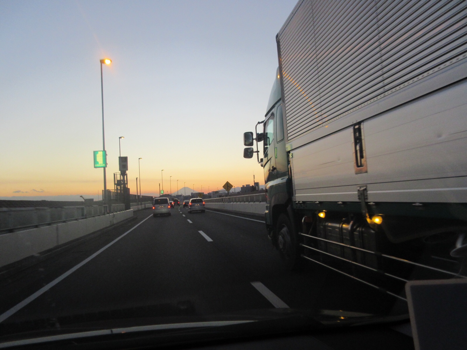 7日.夕方5時17分です、横浜市立大学附属病院の帰りに、保土ヶ谷バイパスに入る手前で、夕闇が迫る中→遠くに富士山が綺麗に見えましたので、写真を撮りました。ご覧になってください。10月7日.撮影 東條初恵