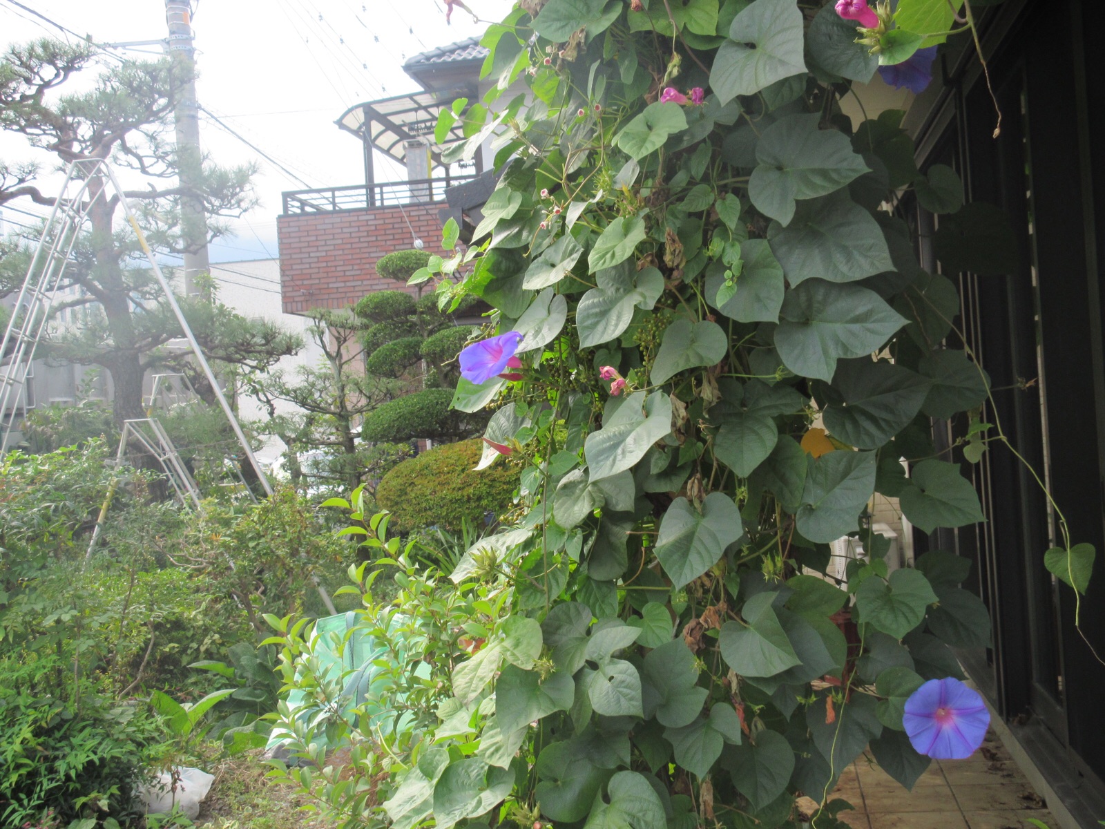 5日.朝から庭師が2人入り、混雑していた庭が、夕方には、とっても綺麗になりました。朝顔の花が、まだ元気で咲いています。ご覧になって下さい。10月5日.撮影 東條初恵