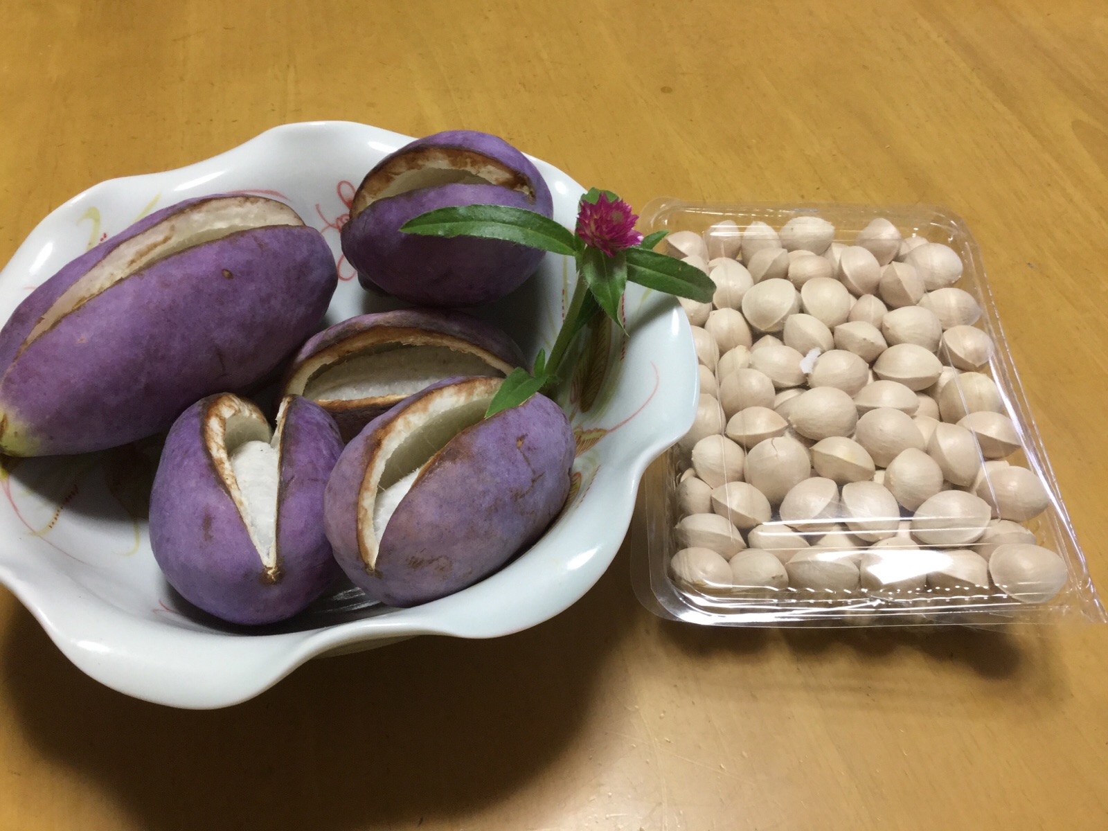 13日.早朝、玄関のチャイムが鳴り、早々に出て行ってみたら、知人が「アケビと→銀杏の実を」届けてくれました。アケビの、紫色が目に入り思わず、わぁーー、綺麗と喜んでしまいました。ご覧になって下さい。 10月13日.撮影 東條初恵