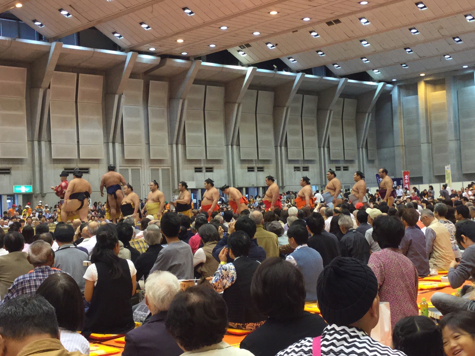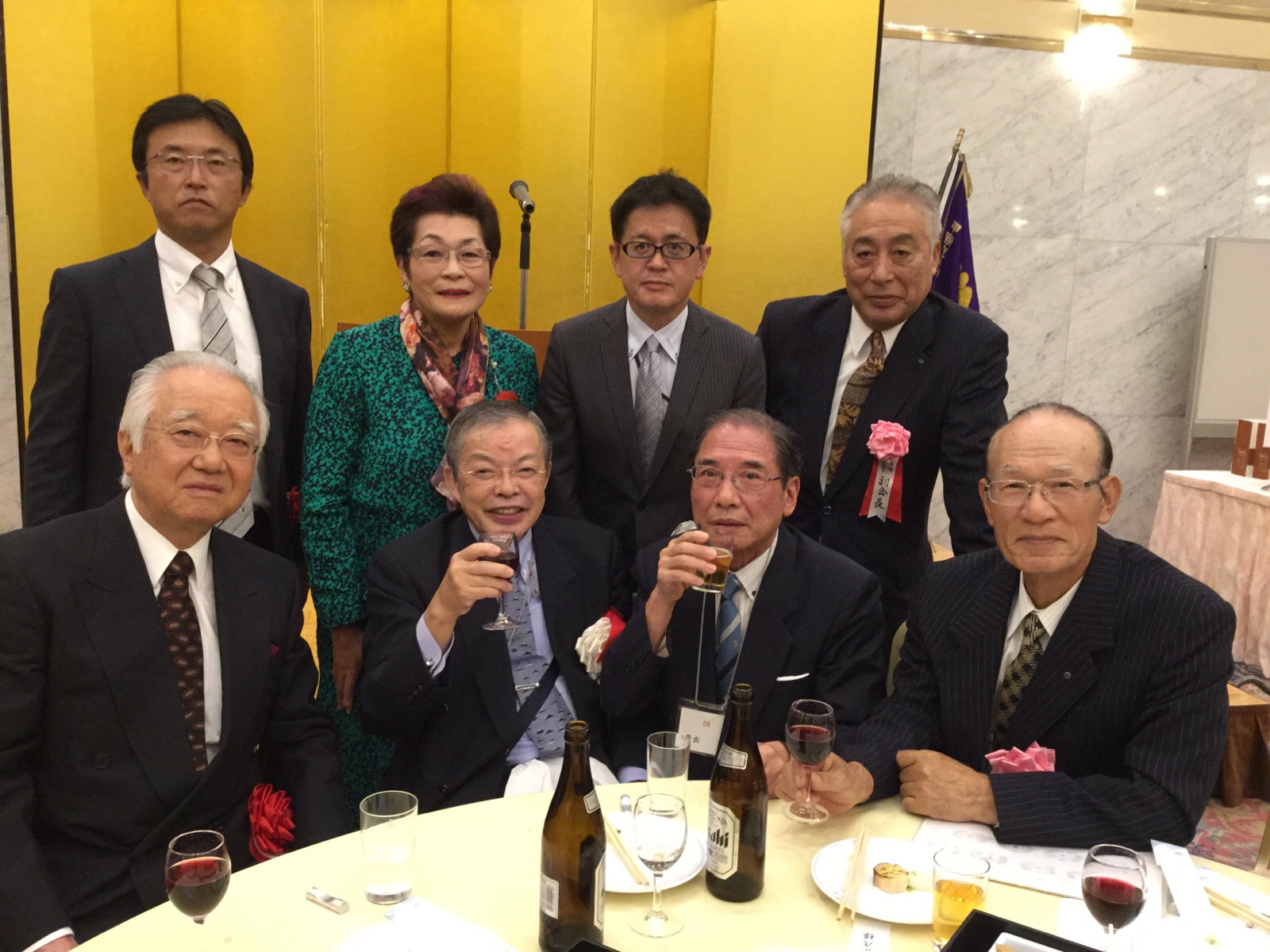 シルバーの部(44人)と、一般の部(62人)に分かれ.午後の5時までかかって、審査が行われました。一般の部で優勝した方には50万円、シルバーの部で優勝した方には20万円が、そんぞれに贈られました。チャリティー金の60万円は、サンニチYBS厚生文化事業団外9団体に贈られました。写真は、ジットの社員→若尾卓弥さんが「世界に1つだけの花」を熱唱し、バックでは、野中さん他3名の社員も一緒になって応援している姿です。ご覧になってください。