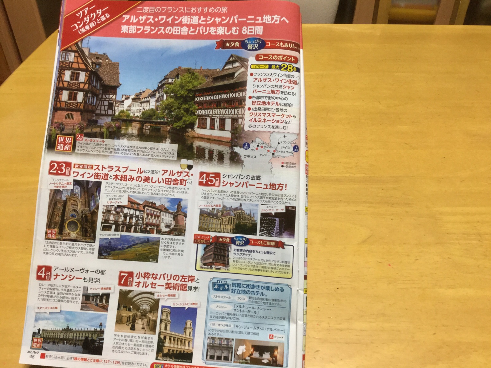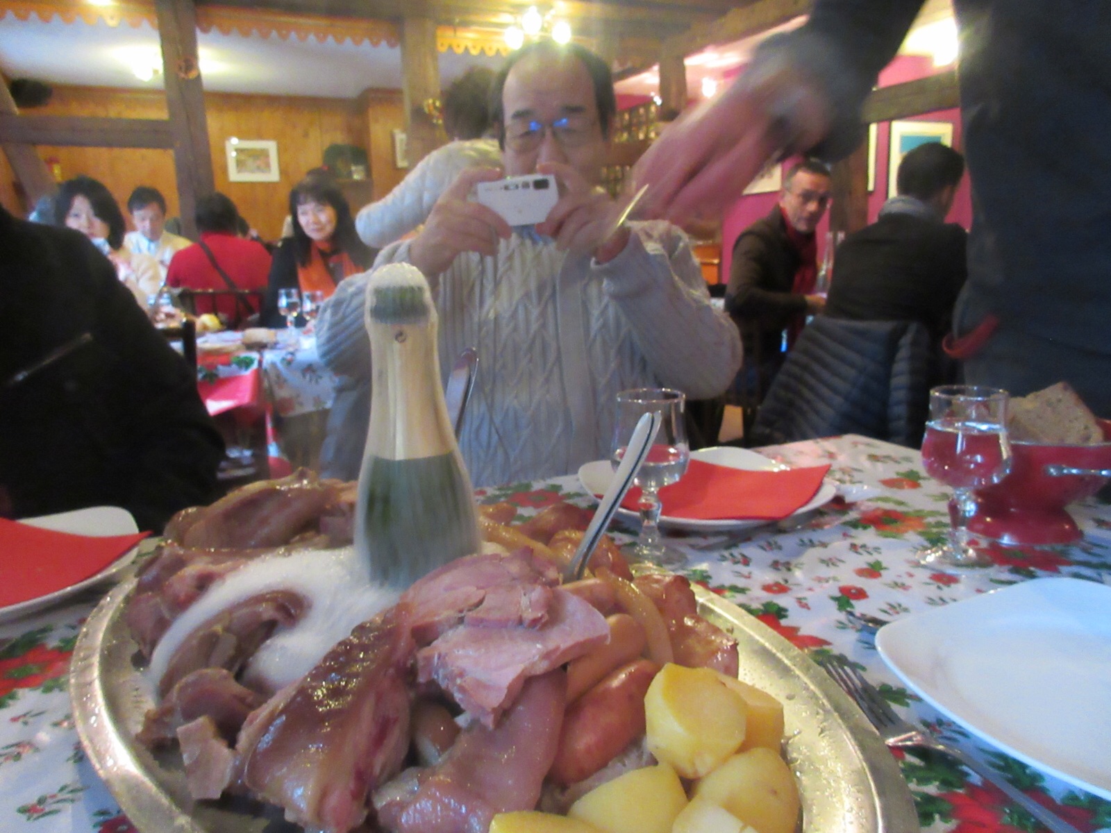16日.ストラスブールから、ナンシーに向かう途中、コルマールのXmasマーケットに寄ってから、ロマンチックな、リボーヴィレ、フランスの最も美しい村と呼ばれる「ぶどう畑の真珠」と呼ばれる美しい村、アルザス・ワイン街道巡りを見学してから、木組みの家々が。並ぶ旧市街から、アルザス・ワインのテイスティングの後、お肉と、ジャガイモ、ハムの上から、温かいchampagneを掛けた、食べきれない程の、お料理を頂きました。今晩は、ナンシー泊です。ご覧になって下さい。 12月16日.フランス.ナンシーは、今、23時です、撮影 東條初恵