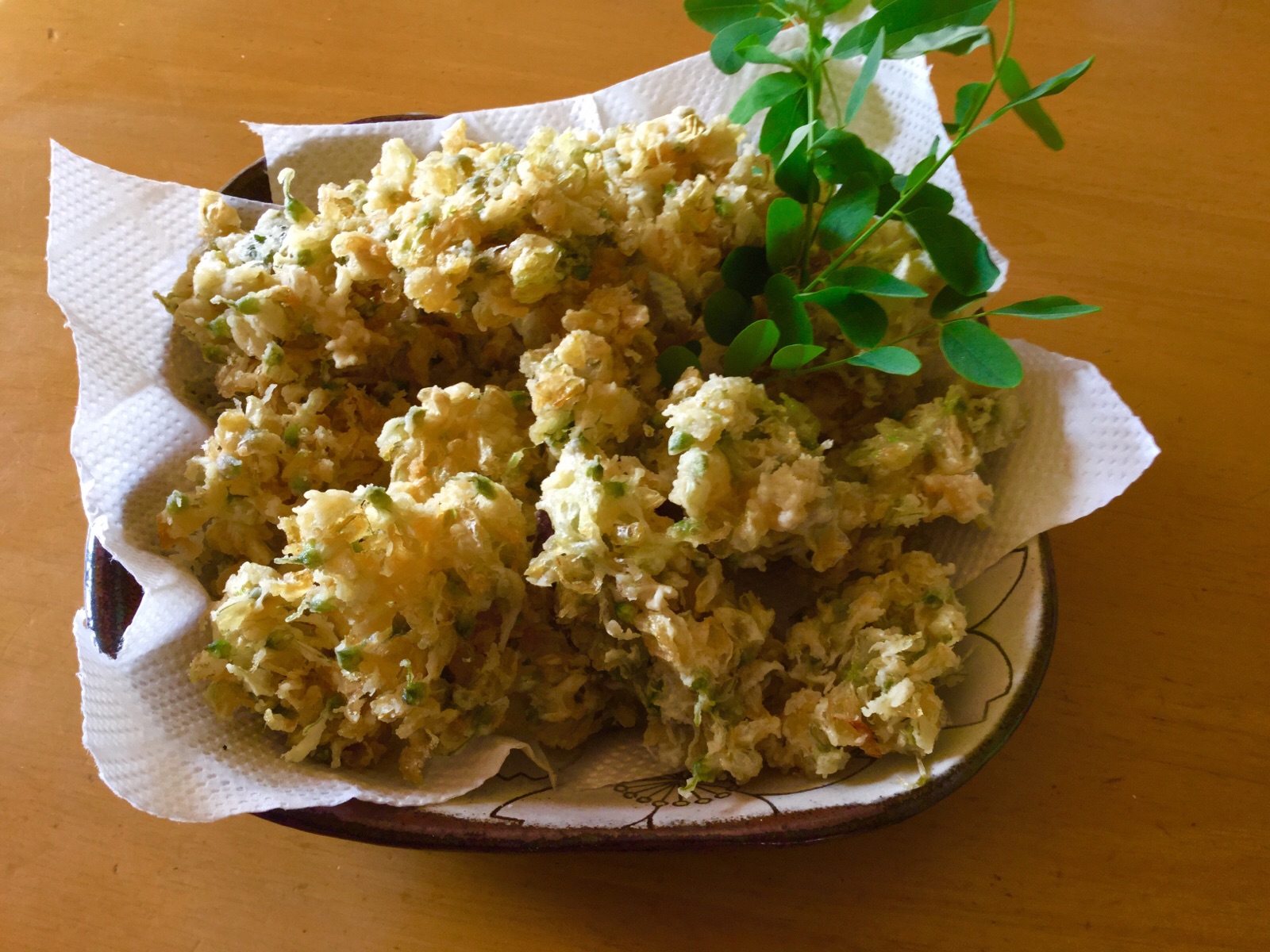 16日.南アルプス市 塩の前へ、亡き両親の墓参りに行った帰りに、「アカシアの花」を摘んできました。早々、「アカシアの花」を、きれいに洗って、お昼に「天ぷら」に、していただきました。「アカシアの花」や、「天ぷら」を、お隣の人たちに、お裾分けしました。アカシアの花の天ぷらは、1年に1度しか食べられませんが、お口の中に入れると、アカシアの甘酸っぱい香りが漂い最高でした。ご覧になってください。平成29年5月16日、撮影 東條初恵