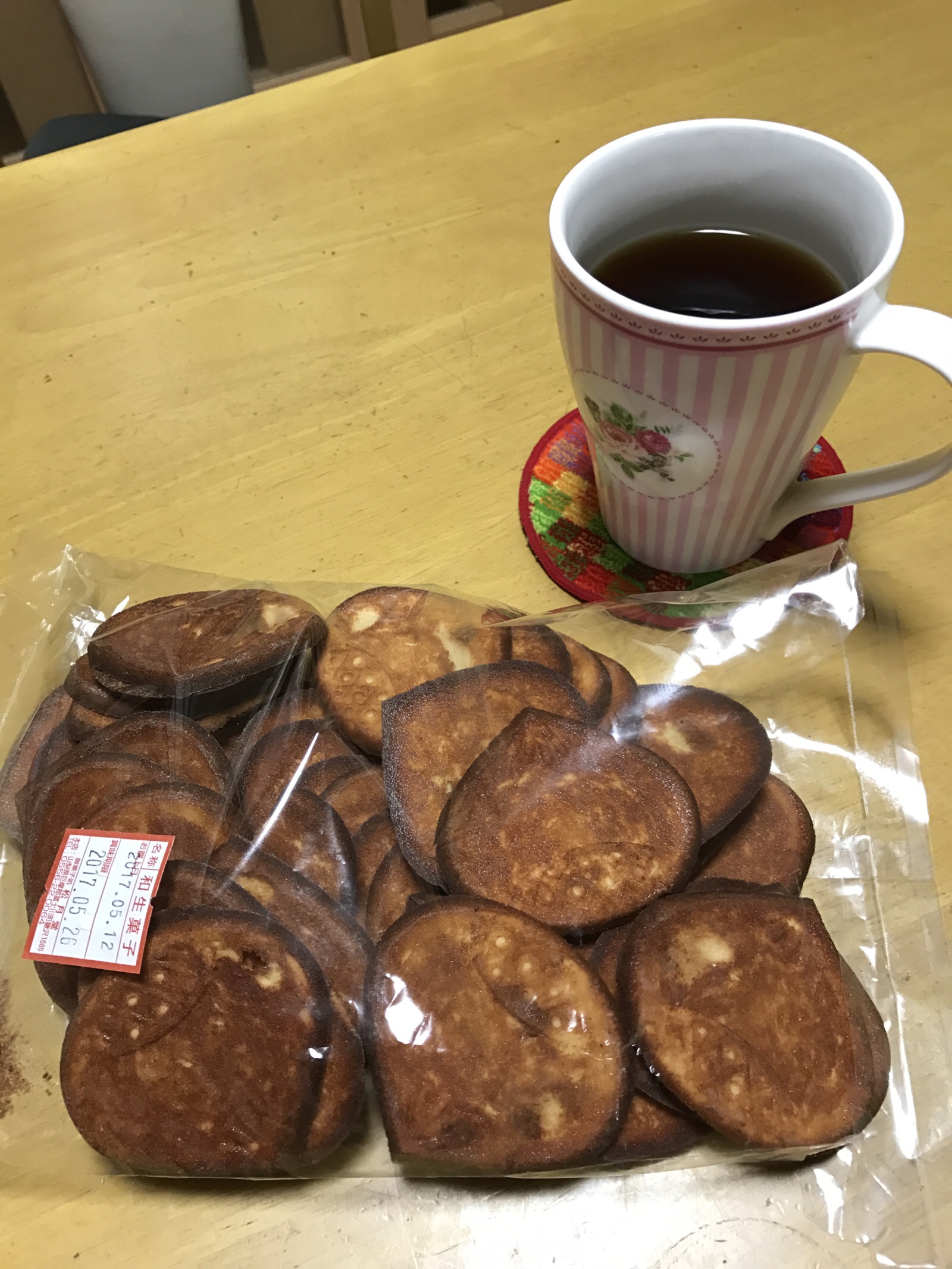 友達の、塩沢梅子さんから、美味しい、栗煎餅を、沢山頂きました、iPhoneからの初めての投稿です。ご覧になってください。平成29年5月15日撮影 東條初恵