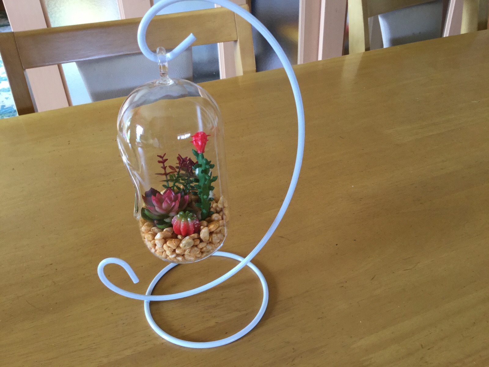 14日.母の日プレゼントです。千葉県に嫁いだ長女の、子供たち(孫)が選んだ、オシャレでテーブルの上に飾って、見てもらいたいと.思いを込めた、きれいなお花です、遠く(千葉県)にいても「枯れない花」を、送ってくれた様です。ご覧になってください。平成29年5月14日(母の日)撮影 東條初恵