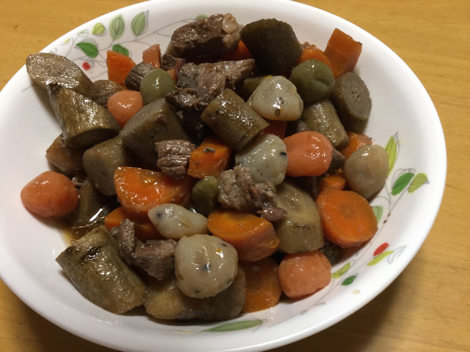 21日.夕方、一邦さん得意の「牛スジゴボウ」を作りました。材料は、ごぼうと→牛すじ→にんじん→コンニャク、です。ご覧になって下さい。平成29年5月21日撮影 東條初恵