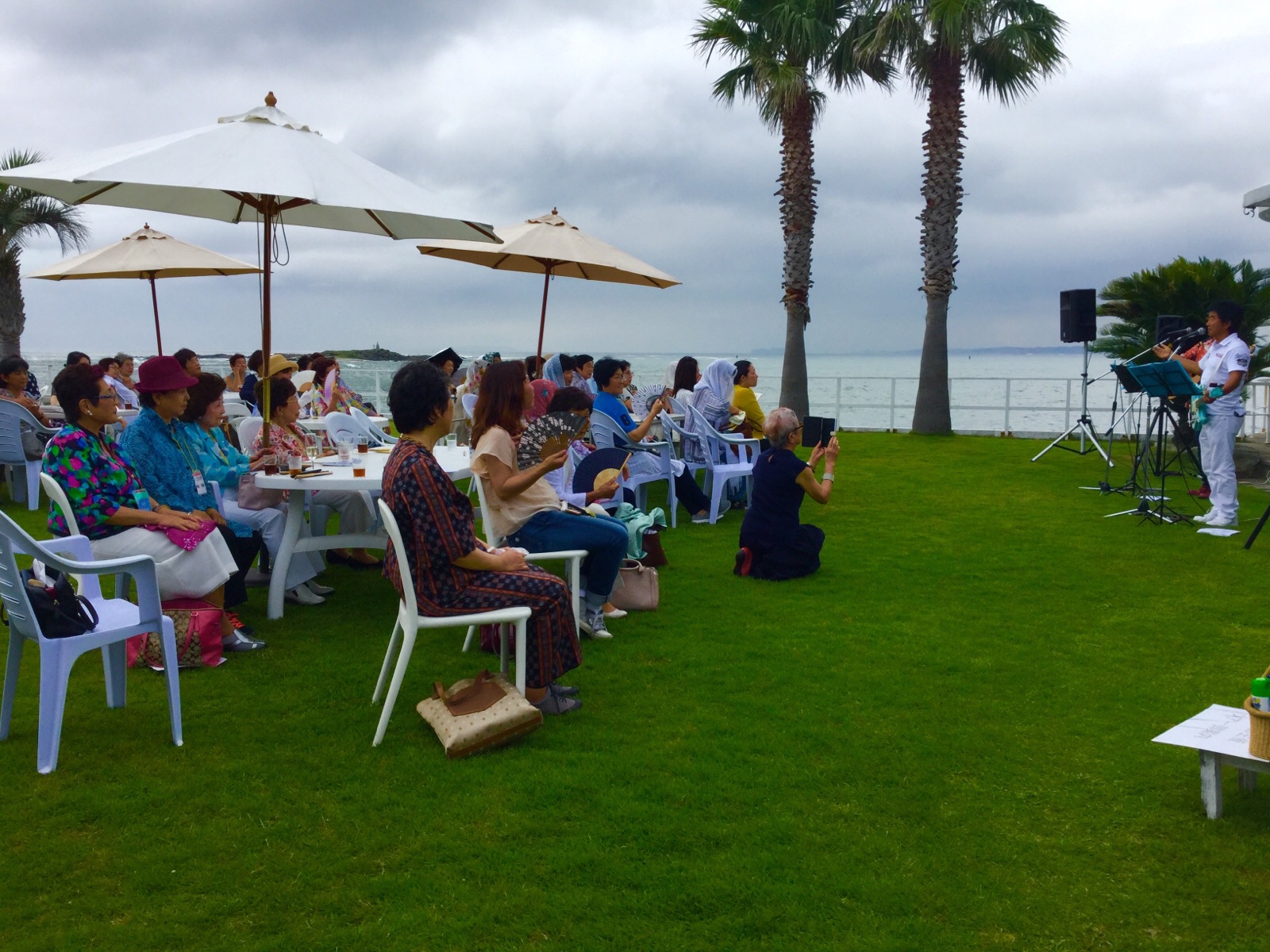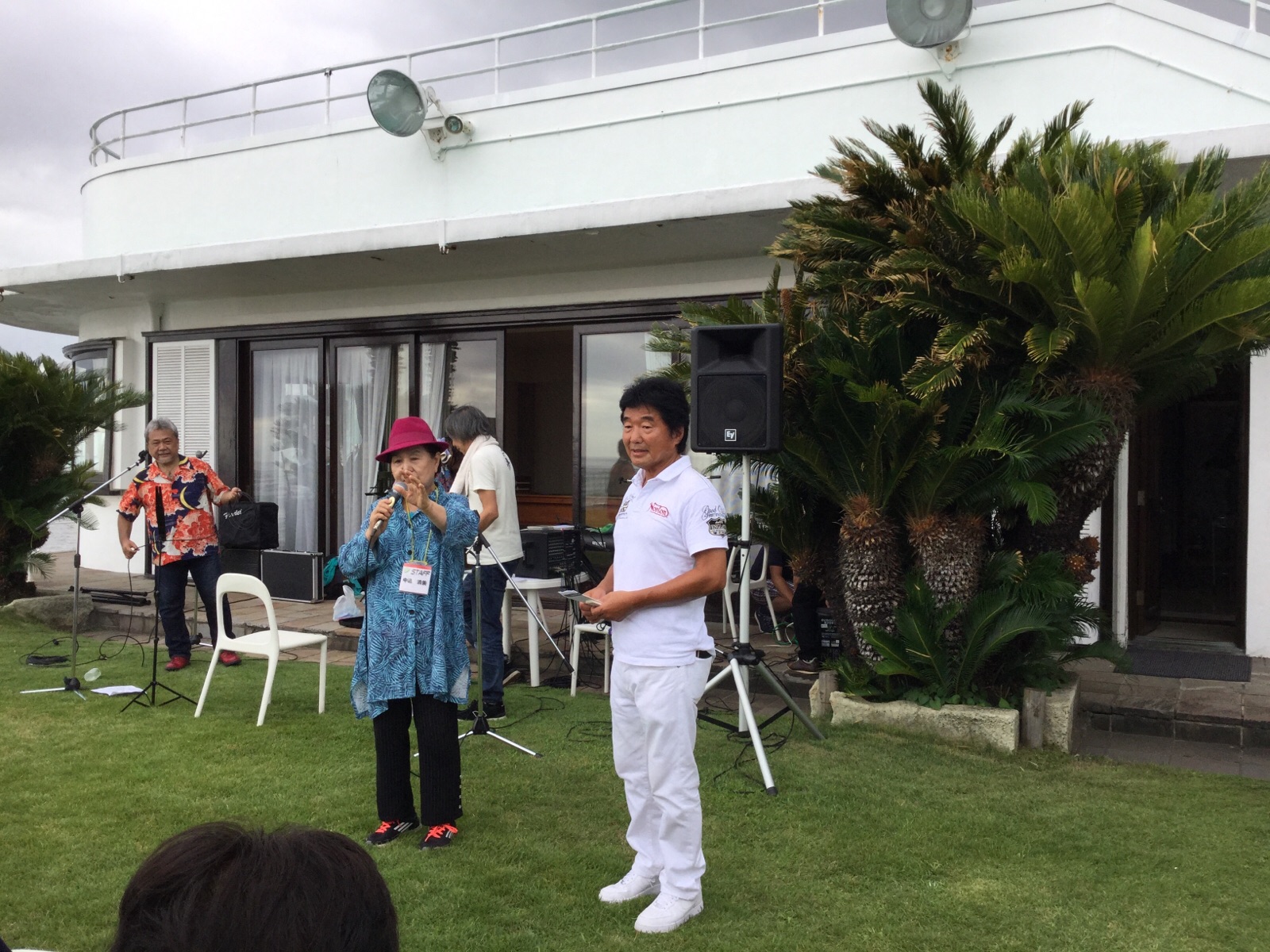 4日.午前11時に横浜桜木町駅前に集合して、バス1台で、横浜山手「ブリキのおもちゃ博物館」を、社長の北原照久様の、ご案内を聞いた後見学し、ショッピングをしてから、北原さんのお住まいの、佐島の家に→直行し、美味しいバイキングの昼食をいただいた後、北原様自らMINIライブを演奏して下さり、75人の参加者が、本当に楽しいひと時を、過ごすことができました。この佐島バスツアーの企画を立てた人は、神奈川県間税会連合会女性部会→会長の中込清美さん(赤いボーシ)です、ご覧になってください。平成29年8月4日、撮影 東條初恵