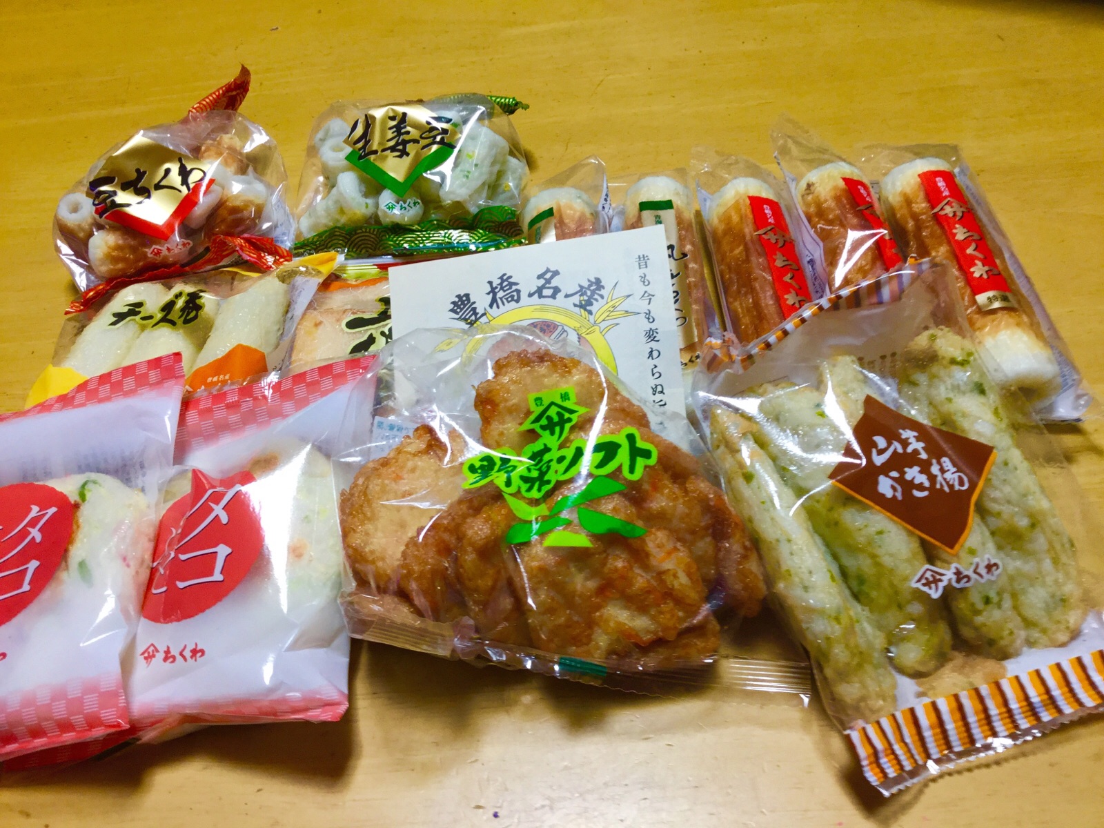 10日.神奈川県相模原市の、北島照秋さんから、豊橋名産の「ちくわ」9品目が送られてきました(貰いました)柔らかくてとっても、美味しい、お酒の→おつまみに最高の「ちくわ」です、ご覧になってください。平成29年12月10日撮影 東條初恵