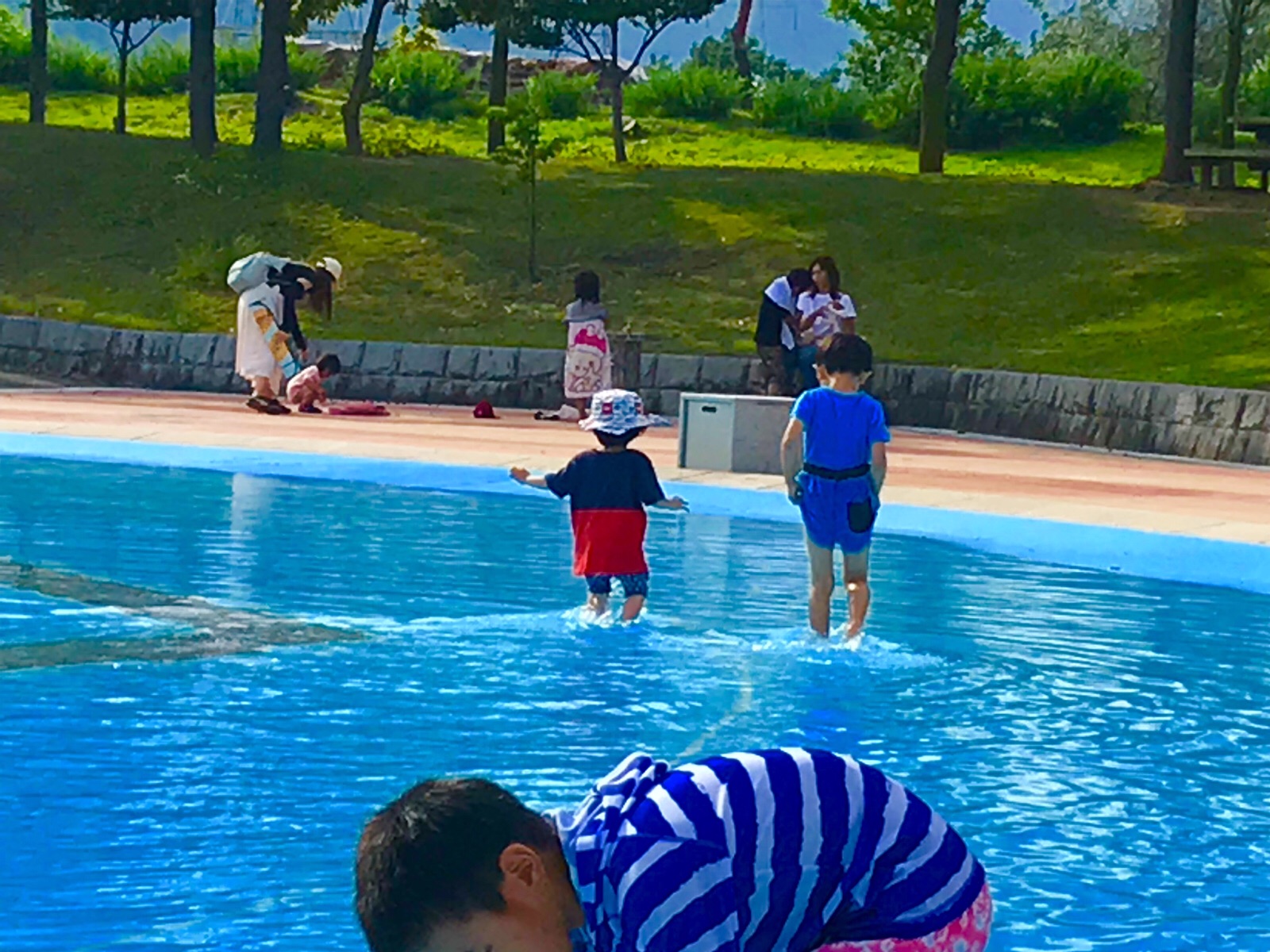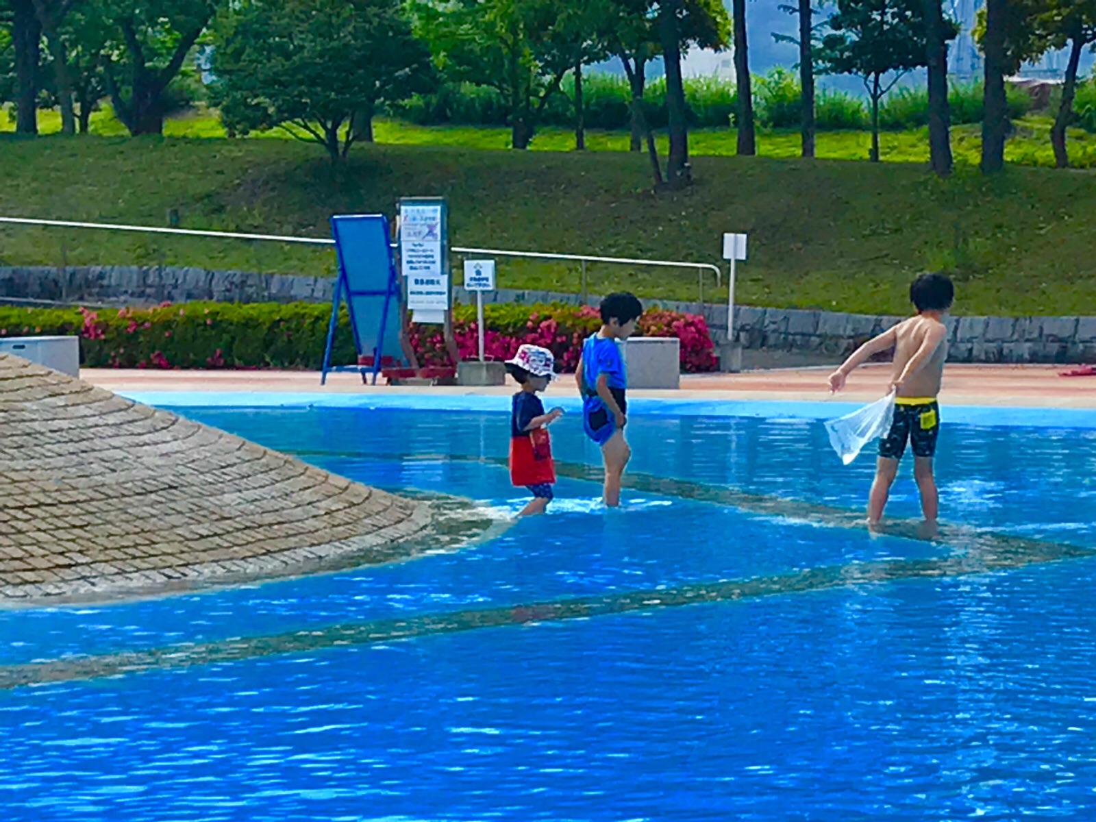 今日、午後15時過ぎに、2人の孫を連れて御勅使公園に、行ってきました、水着の用意もしていかなかったのに、二人が洋服を着たまま、お水の中にどんどん入っていき、ビックリしてしまいました。あっという間に全身水浸しです。洋服がビショ ビショのまま、車に乗って家に帰ってきましたが、とても楽しくて、また明日もパパと一緒に行きたいと言っています、ご覧になって下さい。令和元年6月1日撮影 東條初恵
