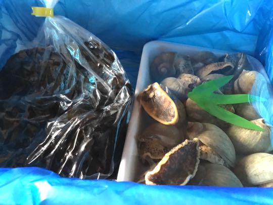 岩手県大船渡市の産直グループの、上野さんの所から、新鮮な魚介類が届きました、お刺身ワカメ、つぶ貝、タラ、白子でした。「つぶ貝」は、ボイルしてありましたので、早々に食べて見ましたが、つぶ貝の先まで、身がギッシリ入っていて、美味しくて食べがいが有りました。ご覧になって下さい。