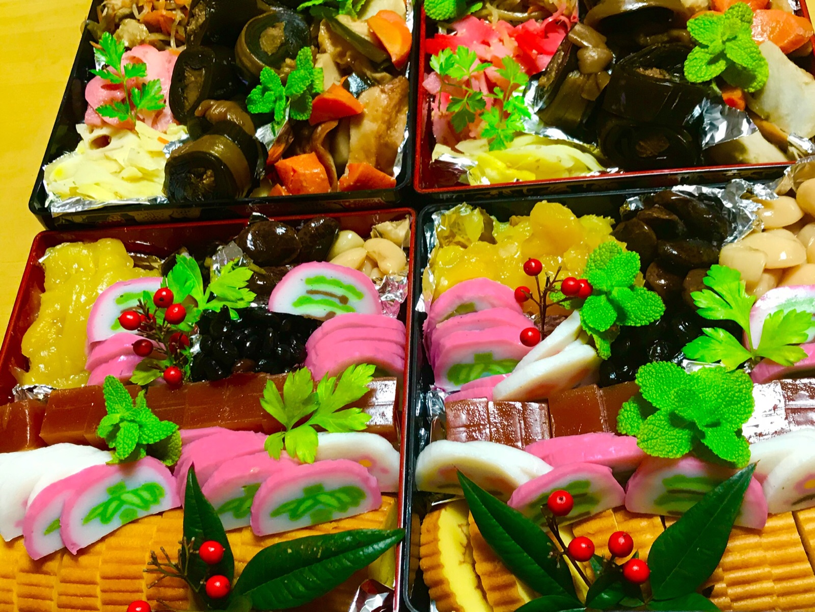 31日.南アルプス市→「グループホームアルプスの仲間たち」の、入居者の皆さん、18名の→おせち料理を作りました、元旦の朝の→お吸い物に入れる→1) にんじんの花形や、2) サヤエンドウの花形、3) 味付け→しいたけ、4)数の子入りナマス、5)キンピラゴボウ、6) 里芋、ニンジン、はんぺん、ちくわ、にんじん、コブの煮物、7) レンコンのきんぴら(赤と黄色)...8) 大きな鍋で→年越しそばのお汁...を、いっぱい作りました、ご覧になってください。令和2年1月1日、撮影 東條初恵