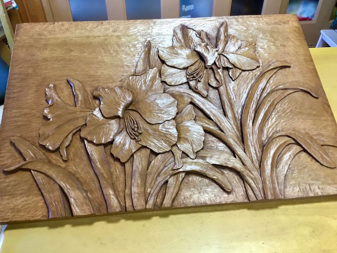 16日.一邦さんが、鎌倉彫りで→4ヶ月かけて、「アマリリスの花」を彫りました、アマリリスは、南アメリカ原産で、太い花の茎を伸ばし、先端に大輪の花を、3〜4輪〜咲かせます。とっても上手に細かく丁寧に仕上がっておりますので、どうぞ、ご覧になってください、
