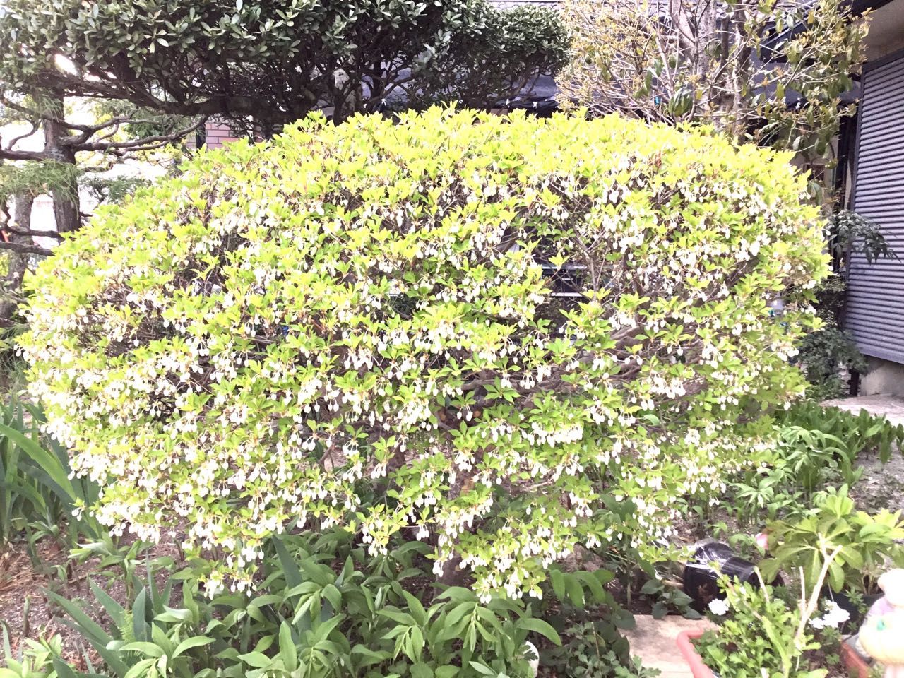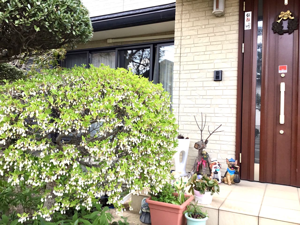 今~我が家の玄関先の、ドウダンツツジが満開に咲いています。