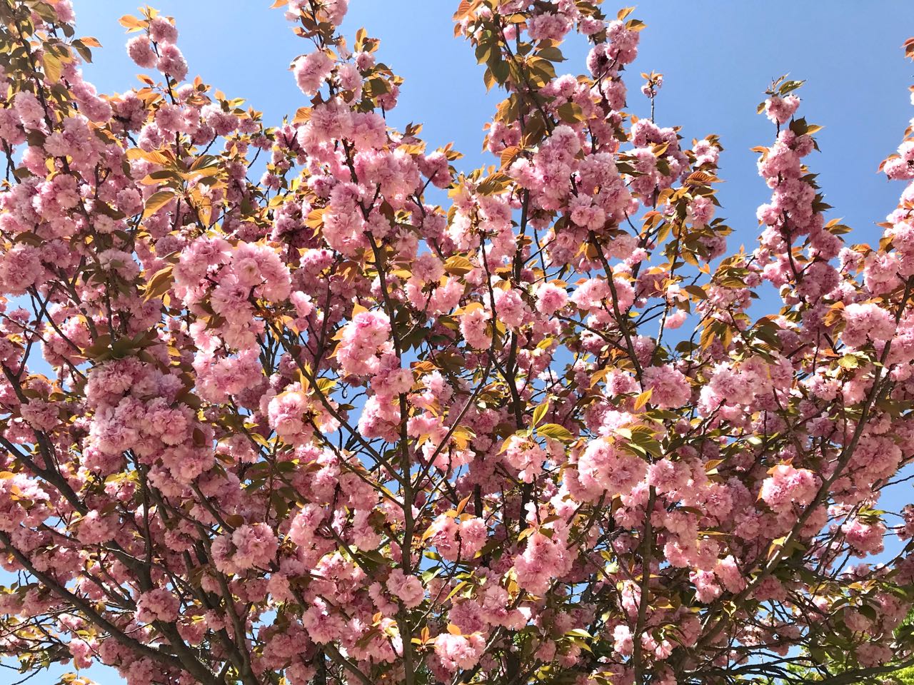 19日.南アルプス市櫛形公園へ、ウォーキングに行ったら、桜の花から「花みずき」から→「八重桜」に変わっていました、公園の芝では、ゲートボールの試合が行われていました、ご覧になってください、
