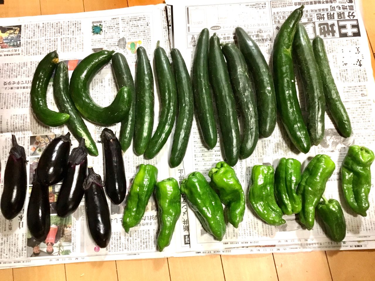 18日.夕方、一邦さんが、沢山の収穫だよ、、と、言って、カゴにいっぱい、野菜を取ってきました、早々にピーマンとベンコンの、味噌炒めをして、今晩、いただきます、ご覧になって下さい、