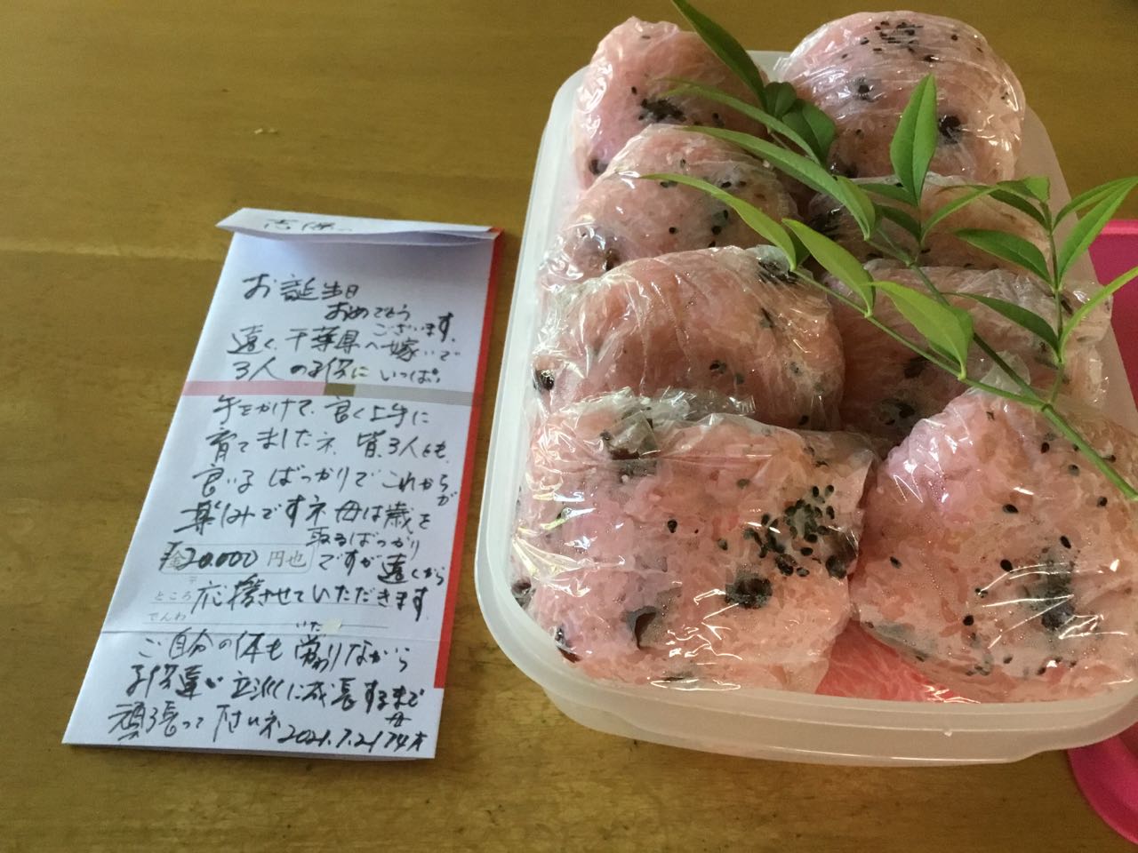 千葉県木更津市にとついだ、長女のお誕生日に、お赤飯と、お祝いと、岩手県から、送られて来た、美味しいお菓子、アーモンドROCKを半分送ってあげました、とても、喜んで電話がありました、ご覧になって、ください、