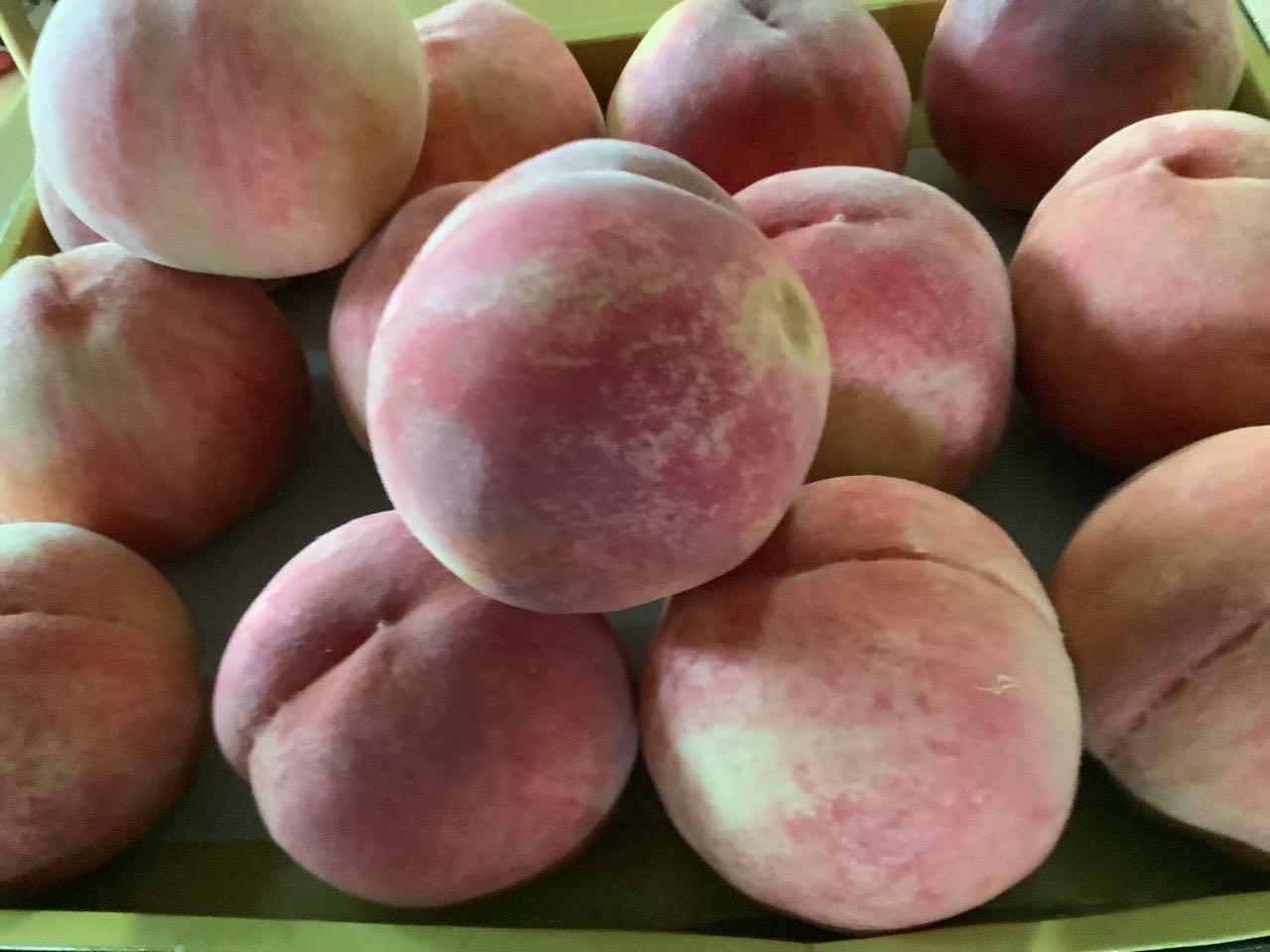 玄関のチャイムがなったので、出て行ったら、農家の人が、玄関へ、いっぱい桃を持ってきてくれました、、、ご覧になってくたさい、
