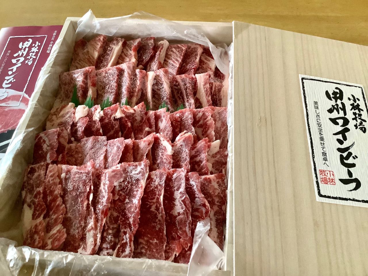 19日.小林牧場の→甲州ワインビーフが、塩谷工業の社長(弟)から、今朝、クロネコヤマトが、届きました、今晩→食べる分だけ少し出して、、あとは、小分けにして.食べやすくして、冷凍庫に入れておきました、ご覧になって下さい、