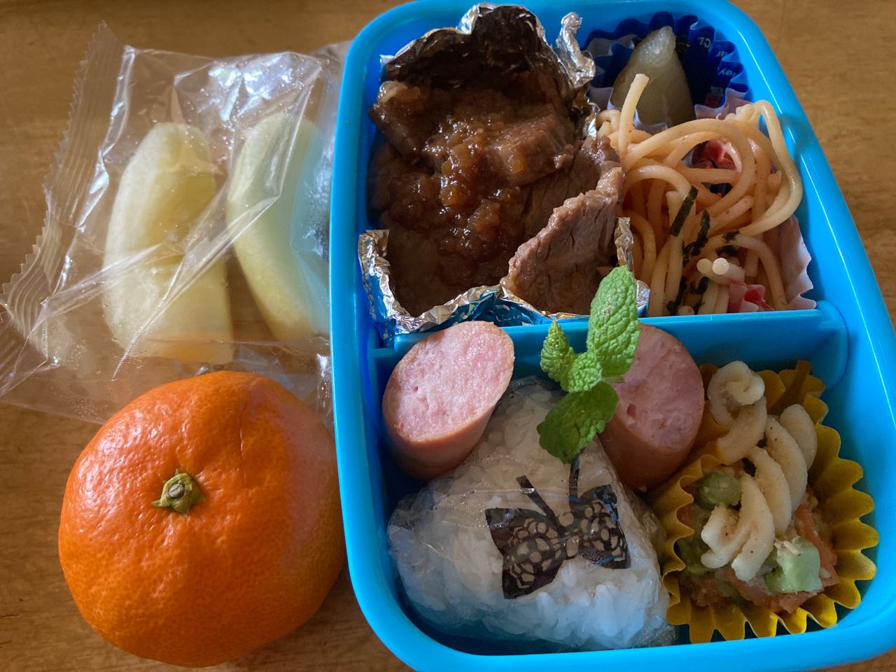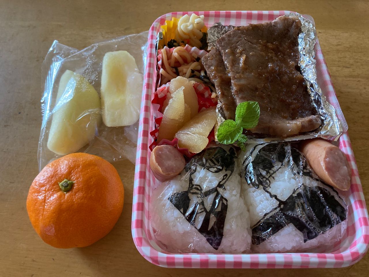 20日.朝から、孫2人が、お弁当を持って、おはようございまーーす。、と、言って私の家に.やつて来ました、夏休みになって、これからが、大変です、お弁当の中味を、見せてもらったら、これは、また、ビックリです。お弁当を開いてみたら、大きな牛肉が、→5枚と、→数の子、→ウィンナー、→タラコパスタと、→おにぎりは→「コナン」と「セイイチ」だそうです、私に、わからない、名前ばかりです、が、5才の孫がこの、お弁当に入っている、牛肉は、昨日.東京から買ってきたお肉で、これだけで、、2000円だよと、言われると、また、まは、ビックリしてしまいました、今日から、夏休み、、これから、2人が毎日来ると思うと、この先、思い知らされます、ご覧になってください・