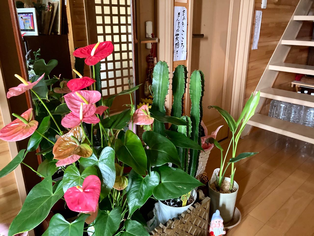 16日.玄関の花を、胡蝶蘭から→夏に強いAnthriumに、変えました、アンスリウムの仲間は、熱帯アメリカから、西インド諸島に、約600種が、分布しているそうです。光沢のあるハート型の花は、長い時間楽しめる、鑑賞する鉢花として、栽培されています、鉢花としてはもちろん、切り花としても利用されており、国内外問わず、大変人気があります、ハワイではバレンタインデーの日に→ギフトとして贈る花としては、1番人気だそうです、我が家でも→胡蝶蘭から→夏に強いアンスリウム変えました、