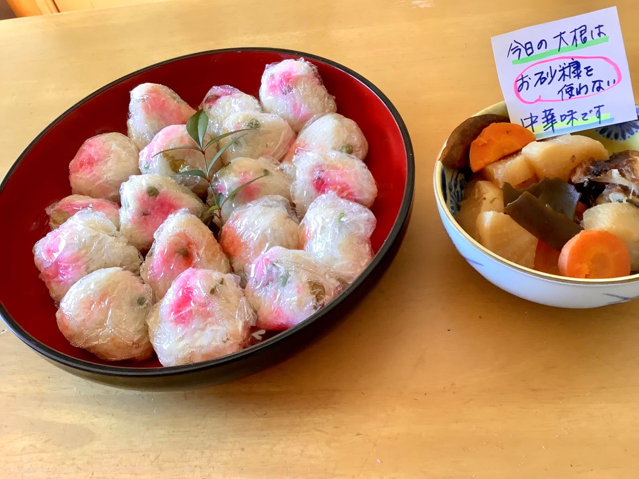 9日.朝、子供たちの「おやつ」に、お雛祭りの、でんぶを入れて、北海道産の「えんどう豆」の、ご飯の素を買ってきて、有りましたので、生の.えんどうも買ってきて、あっさりとしたタレで、炊き込みました、炊きあがってから、調味料とお砂糖少々に、酢を少し入れて、お寿司風に仕上げました、隣の家にも、少し→分けてあげようと.思っています..大根は、我が家の畑から、今朝とってきたものを、今日は、お砂糖を入れずに、大船渡から送ってきた.白身のお魚を入れて.中華味で、煮てみました、上品な味付けになりました.→カズクニさんが、陸上の練習に行って帰ってきてから、お昼に食べるかな?スープもあります、