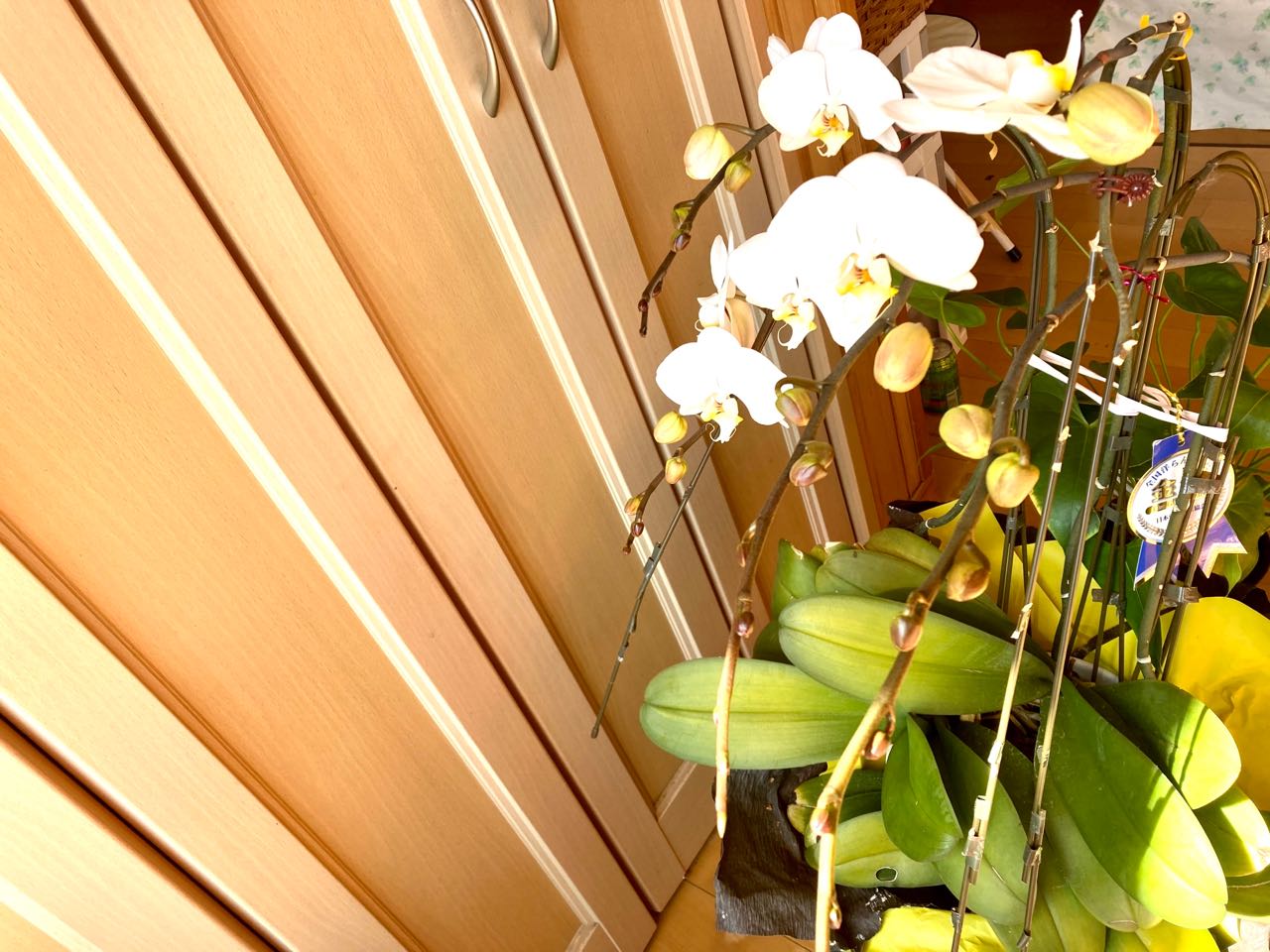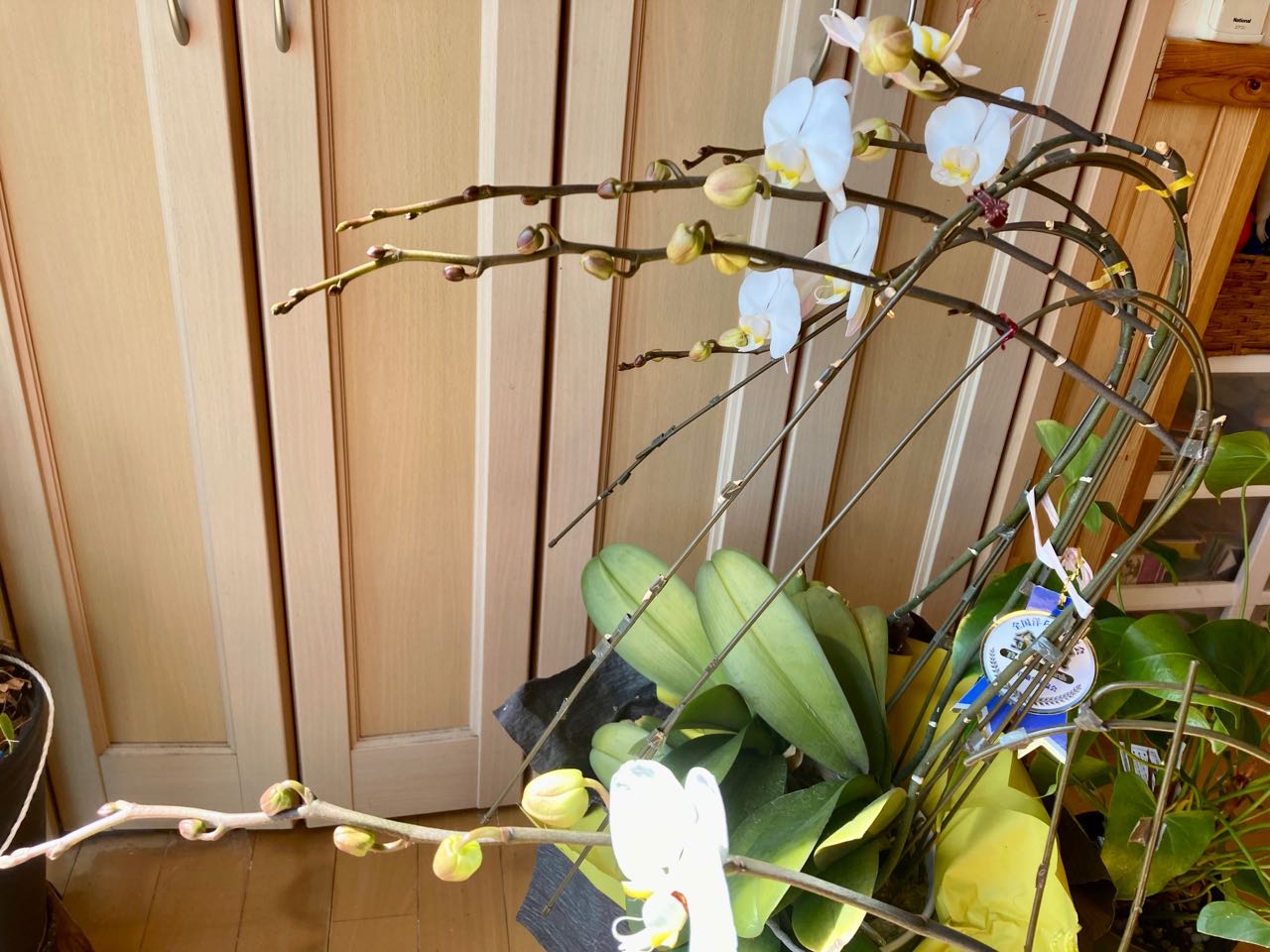 7日.ここのところ.暖かくなってきましたので、我が家の「胡蝶蘭」も、少しずつ花が→咲き始めました。寒い時期を通って、毎年咲いてくれる花ですので、とっても、嬉しいです。今朝、玄関に.1鉢移し、残りの2鉢は、洋間に飾りました、ご覧になって下さい、