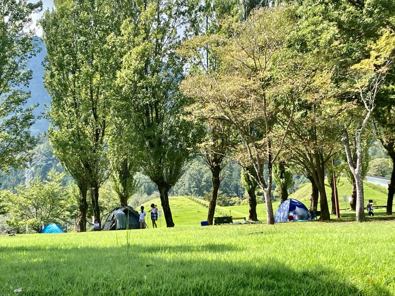 美術館の裏側には、テントを張って、キャンプを楽しむ家族が、いました、、