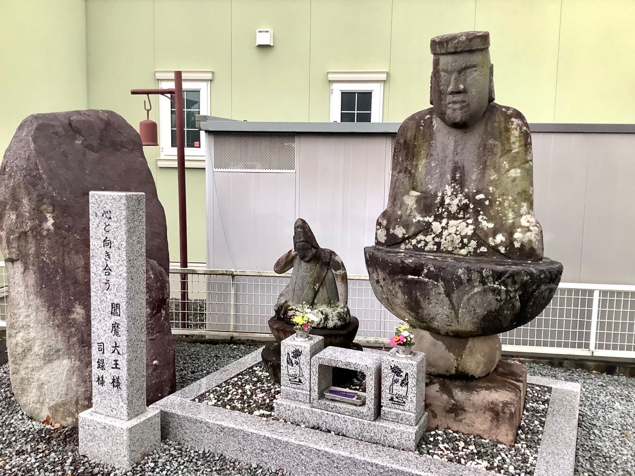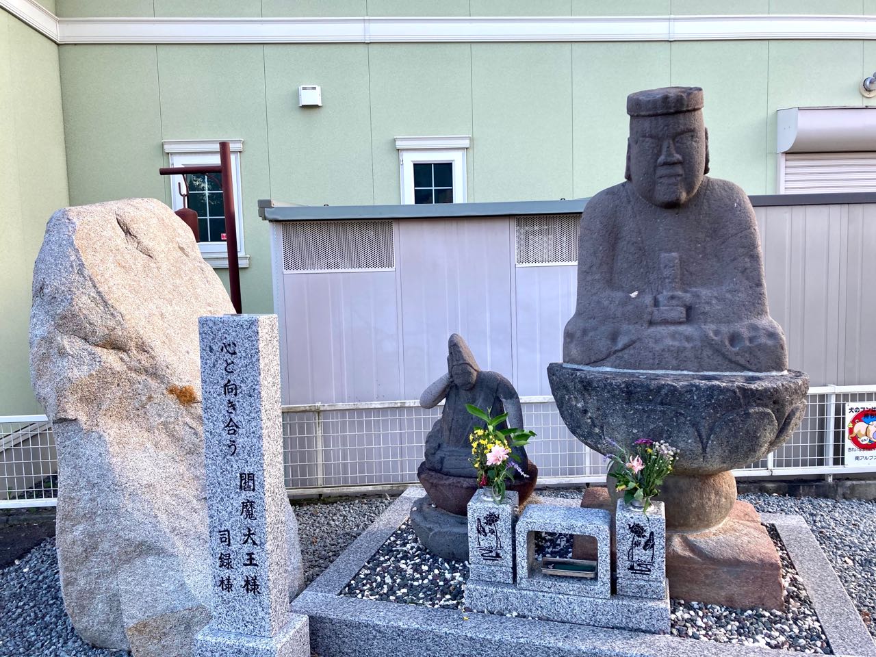 きれいになった、閻魔大王様の、お体です、ダリアの花も、ご覧になってください、