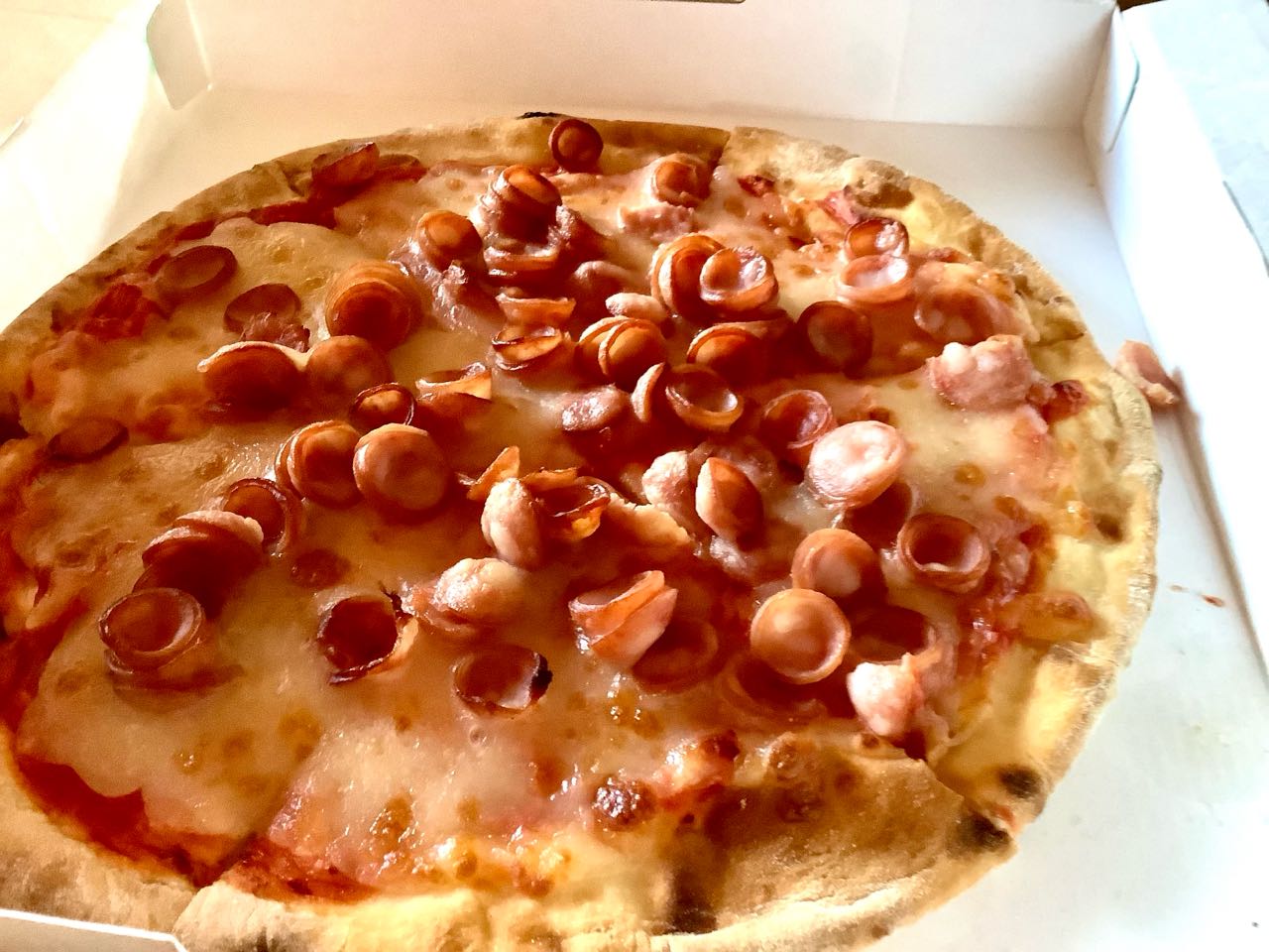 帰りに、ソーセージピザを、お土産に→持って帰りました、ご覧になってください.
