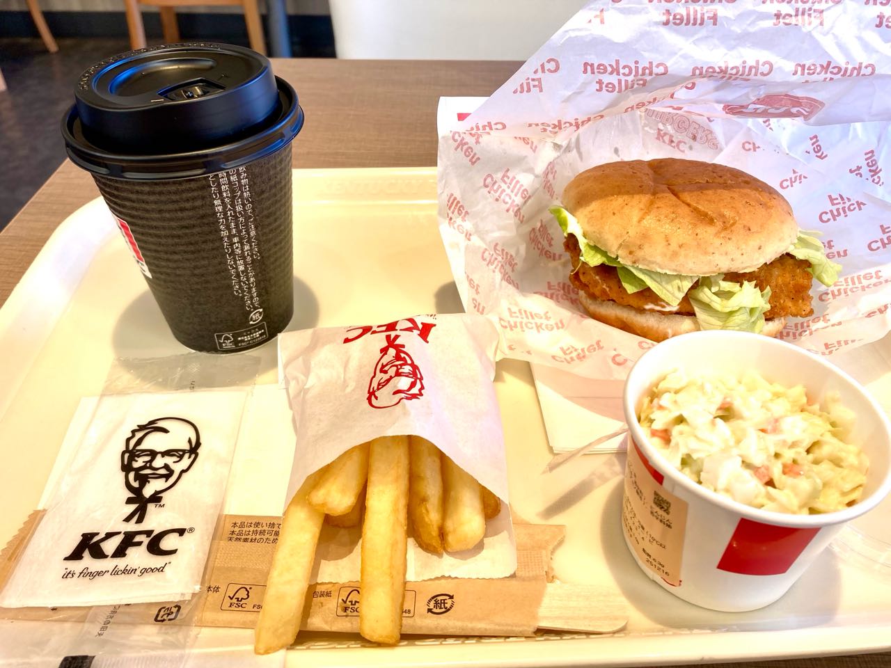 27日.午後1時から甲斐市のスポーツジムの帰りに、15時.遅い昼食を、ケンタッキーで食べています、、トレーナーの、きついトレーニングも、チキン~フィレサンドと.ポテトと.コールスローサラダと.暖かい.おいしい→コーヒーを飲みながら.食べると、疲れを忘れる位→おいしいです.帰りに..エビプリプリを2本と→ケンタッキー1540円の40%OFFをお土産に買ってきました.ご覧になって下さい、