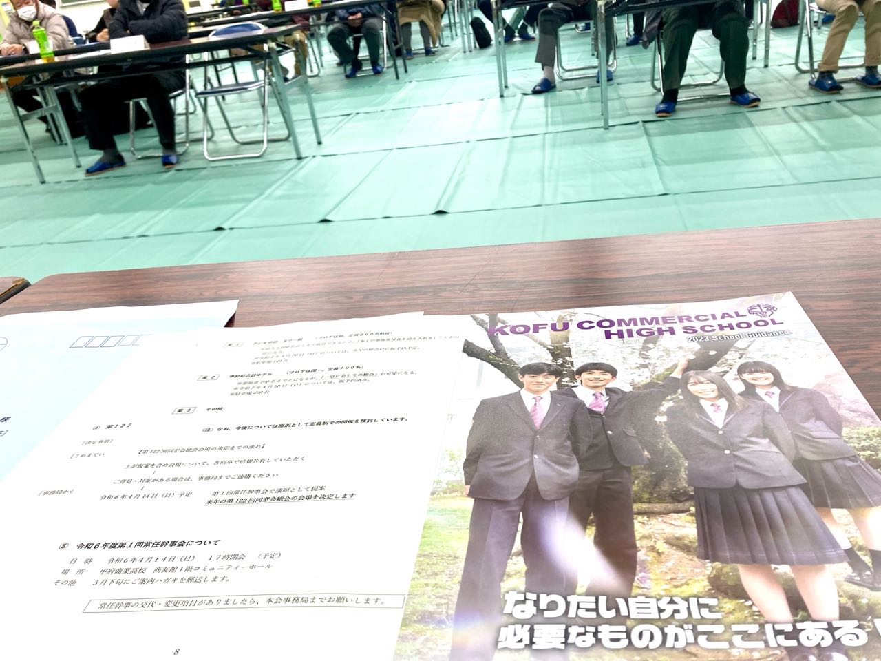 28日(日曜日)→17.00より、甲府商業高校、同窓会の→常任幹事会が、商友会館に於いて、開催されました、令和6年.4月.21日(日)に.開催される、第121回.同窓会開催について他→協議されました、当日は→800~900名の参加者が、出席予定です、会場はアピオの→4会場で.開催予定です。私は→副会長として、出席しました、常任幹事会の、会議の様子をご覧になって下さい、