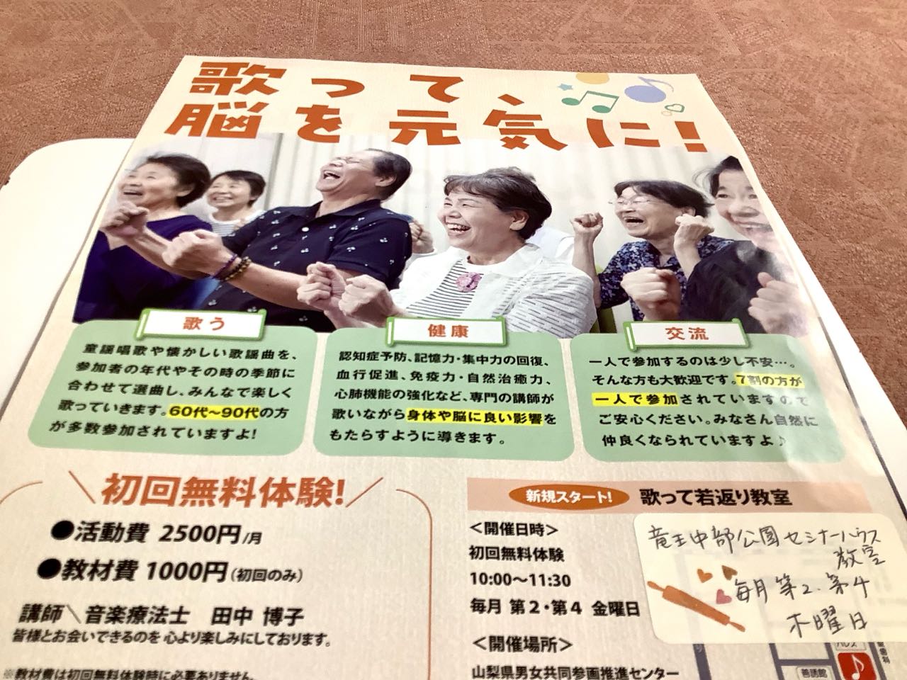 19日. 19時から20時45分まで.やまなし女性異業種の会→「1月の定例会」を.甲府の.「ぴゅあ総合会館」に於いて→開催しました.今月は、甲斐市の田中博子先生を、お迎えして.「歌って元気に輝こう」と、題して、みんなで、元気に、歌を歌いながら→手を使い、歌って「若返り教室」を開催しました、物忘れ→→今朝.何を食べたかな?..認知症→今日はご飯を食べていない等の→音楽療法を皆んなで.学びました、ご覧になってください。