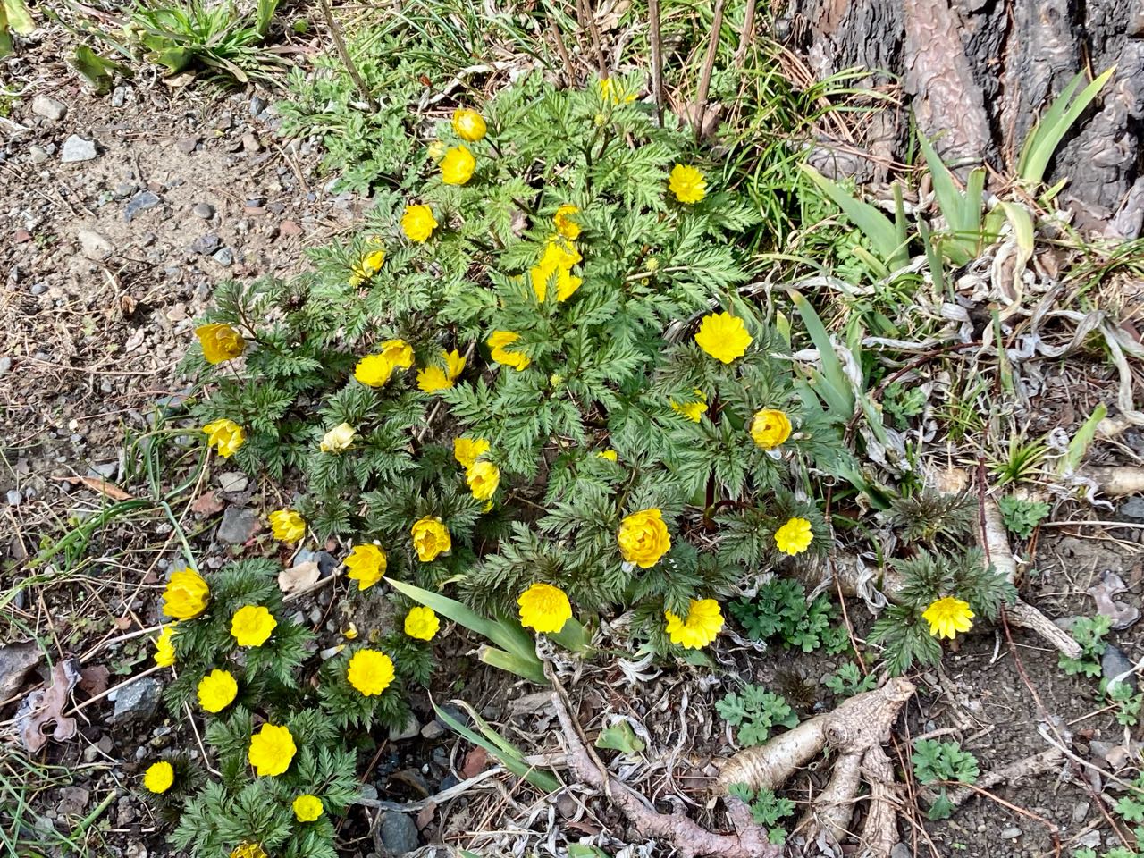 29日、我が家の.庭先の.大きな松の木の.根元にある福寿草の花が、咲いていました、もう、こんなに大きくなり、今日は、切って、お家の花瓶に差しました、