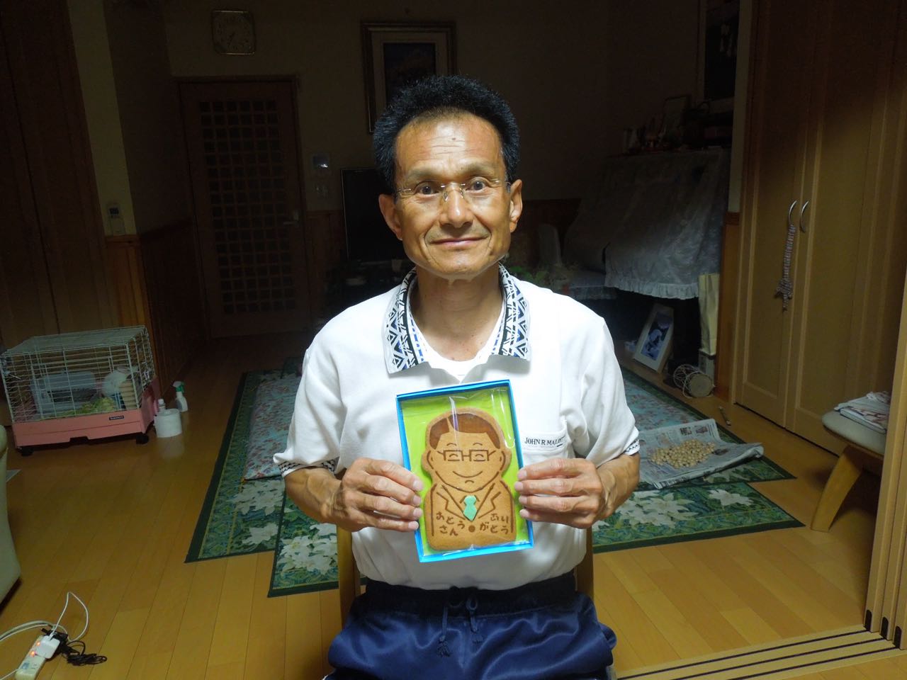 次女→Akikoさんと、10年ほど前に♪一緒に、インドに行った時の、写真が出て来ました、インドの、ムンバイ空港です、毎日、朝からカレーばっかりで、昼も夜もカレーで、お腹がビックリして、体調を懐かし、一緒に出かけた、県内の歯医者さんの先生に、整腸剤をいただいて、やっと、元に戻ったことを、懐かしく思い出しました、一邦さんの写真は、娘から→プレゼントのお菓子です、ご覧になってください、