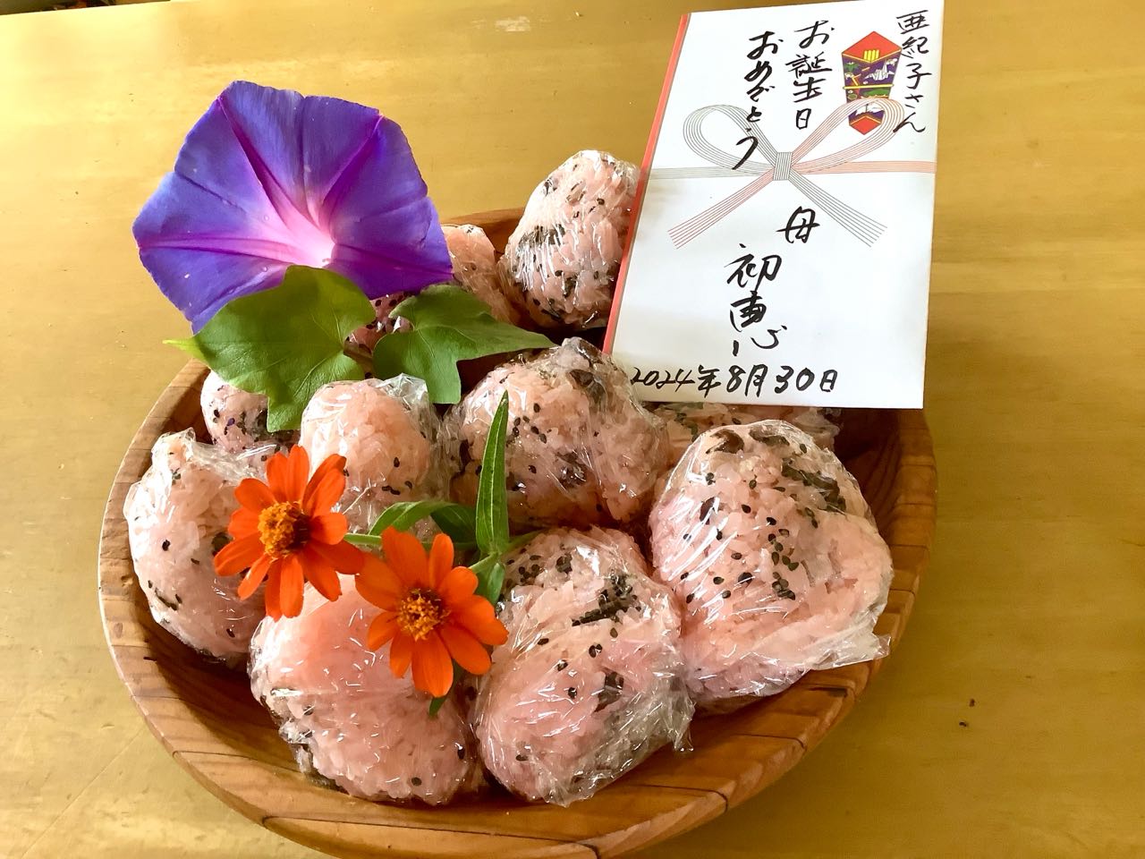 今朝.早くお赤飯を炊いて、お祝いと.お祝いの袋の裏側に、メッセージを書き切れないほど、いっぱい書いて、差し上げようと、用意しました、