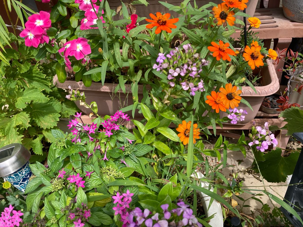 庭に咲いていた「琉球→朝顔の花」と、オレンジ色の「百日草の花」も、添えました。ご覧になってください。、