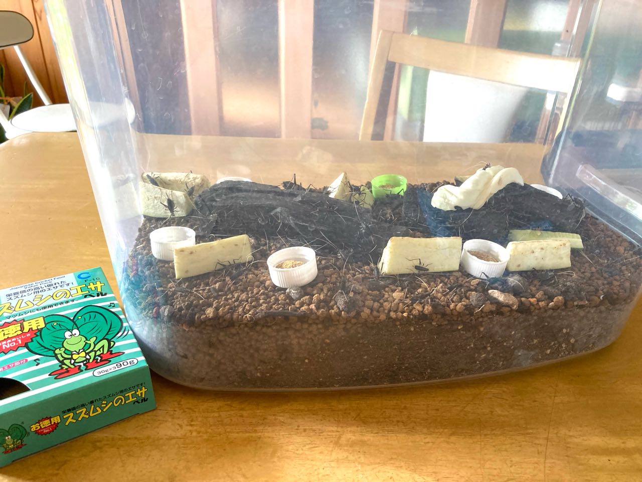 去年の、鈴虫の容器を返して、新しい容器は、一回り大きくて、鈴虫が、70匹以上入っていました、今日→夕方から→鈴虫の.♪♪鳴き声♪が聞こえて来るのが、♪とっても、♪楽しみですが、これから、私の飼育係も、キンギョと、かぶと虫と、♪♪スズムシの、飼育委員長です。市長から、鈴虫のエサも、付けて.いただいて.きました。沢山の、スズムシを、ご覧になってください、