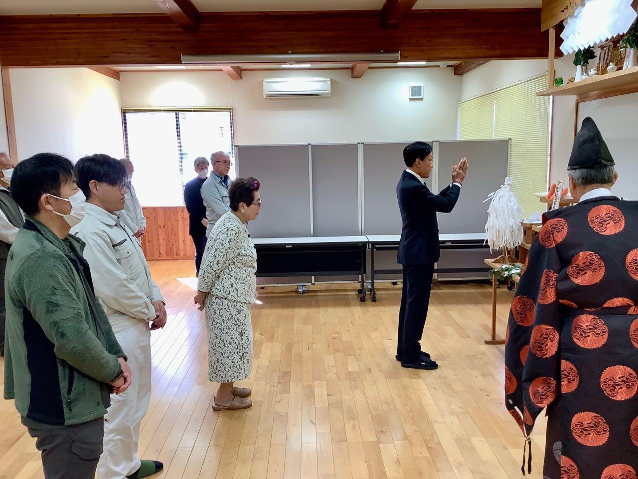 17日.山梨県森林総合コンサルタントでは、午前10時より、甲斐市下今井の、庁舎において、平成7年度の「山の日」→17日に.甲府市穴切神社の.秋山宮司さまを、お願いし、職員全員で「安全祈願祭」を、行いました、写真は.理事長である私が、最初に→玉串を神様に捧げて、次に金子専務が玉串を捧げ→次に、篠原総務部長と職員が全員一緒に、玉串に「安全祈願」を行いました、最後に無事で一年の祈願をした後、御みっき(酒)を、頂きました、ご覧になって下さい、