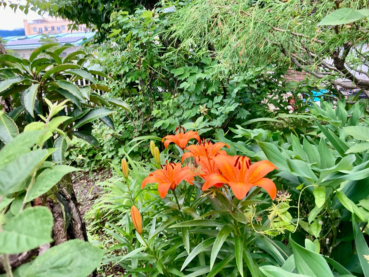 庭先の、オレンジの、百合の花が、とても綺麗でした、大きな木の根元は、「すずらんの花」から~今は、ドクダミの花が、満開でした、これからは、5月号の新聞作りに励みます、ご覧になってください、