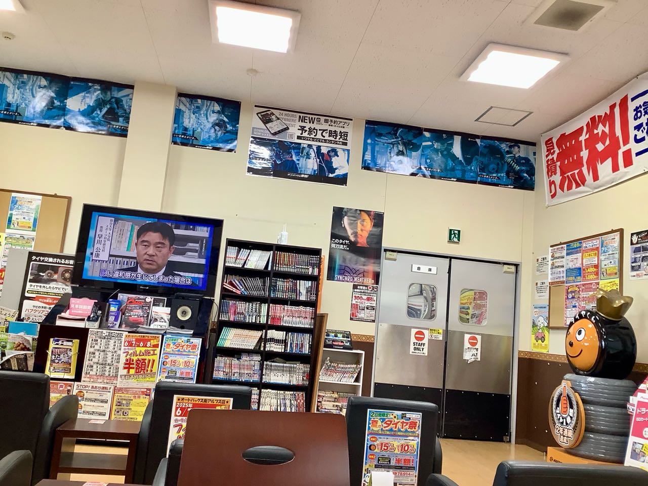 20日. オートバックス南アルプス支店に、冬用タイヤから→夏用タイヤに交換に来て→います。4月、5月は→総会がたくさん続き→タイヤを交換する.時期が、遅くなって.しまい.ました.、いつもですと、タイヤ交換に.2時間位.待たされるのですが.今年は少し遅かったので.行ったら.すぐ入れ替えて.くれて.20分位で、終了しました、、6.600円でした、
