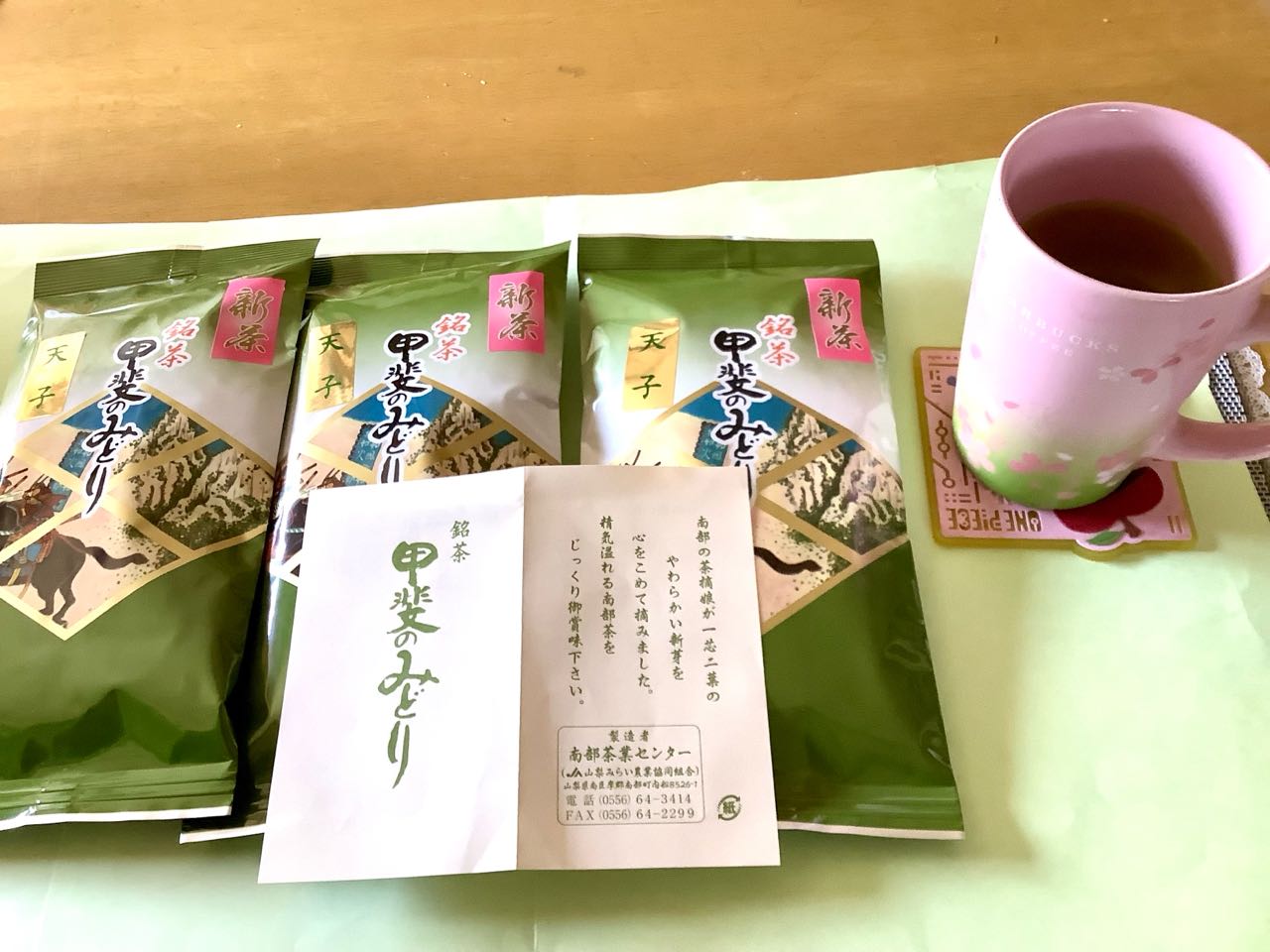 21日.南部町、福士にお住まいの、内田和子さんから、美味しい新茶3本が.送られて来ました、今から、35年ほど前に、茨城県水戸市に、生活指導員の資格を取りに、一緒に行った仲間です。→何年経っても、こうして→新茶を毎年.送ってくれています、感謝の気持ちで.いっぱいです、