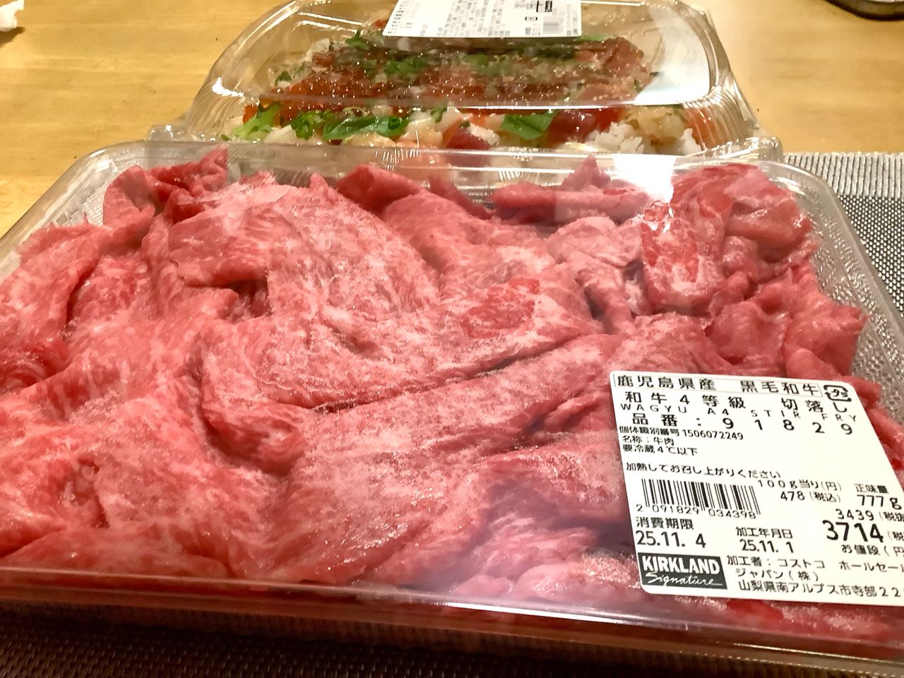 コストコから、お寿司とお肉、ナメローを、買って来ました、