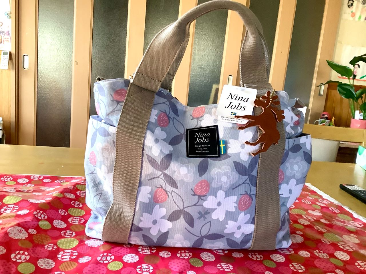 30日.次女Akikoさんが、昨夜→北杜市の「アルソアさんの音楽→コンサート」を聴きに、行って帰りに、私に、スウェーデンの、Nina.Jobsさんの、バックをプレゼントして.いただきました。スウェーデンの国旗や、可愛らしい→「カモシカが」バックに付いていました。夏から→秋にかけて、バックを変えようと思っていたので.欲しかった、バックが手に入り、本当に嬉しかったです。ご覧になってください。
