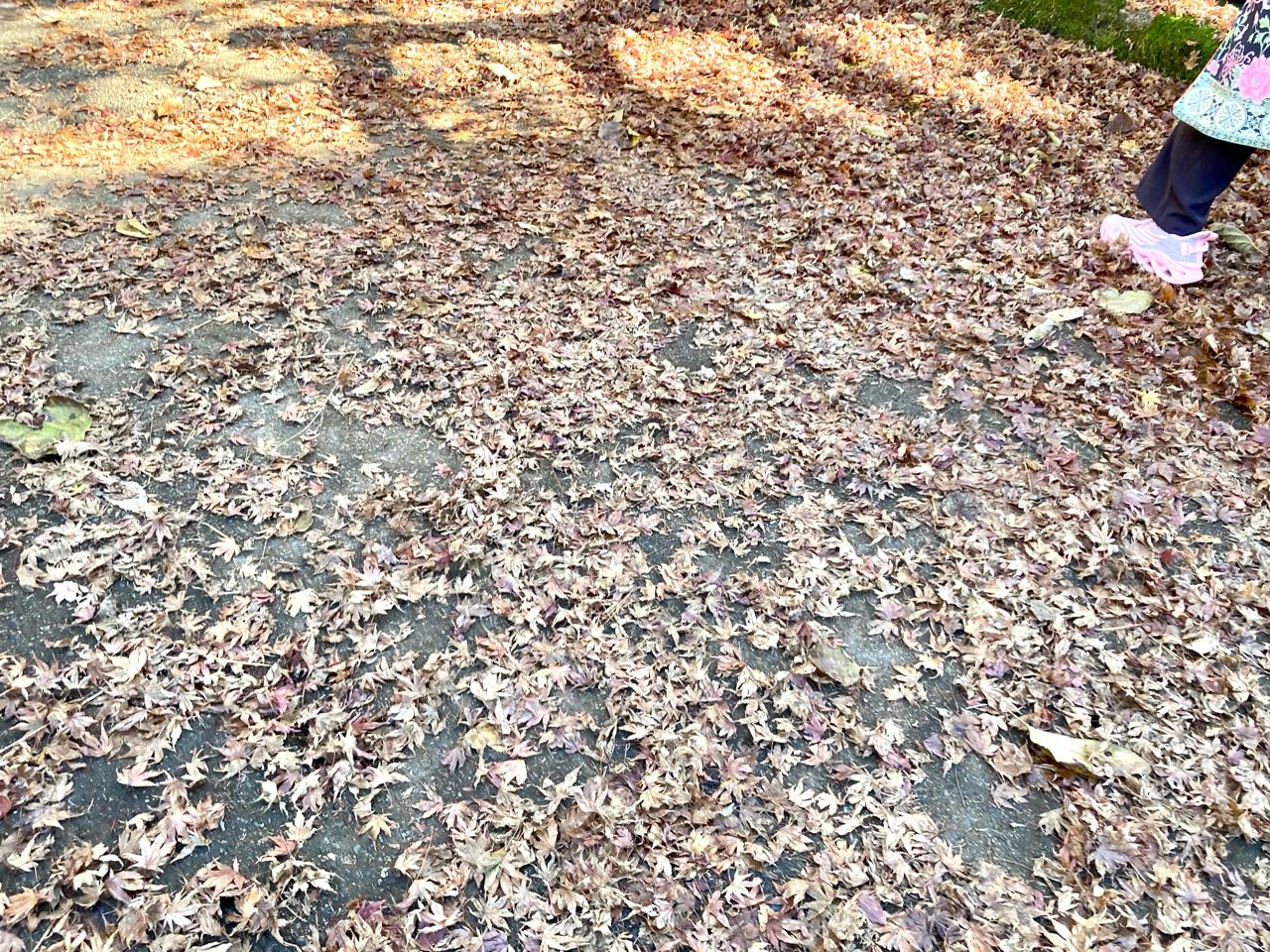 路面は、紅葉の、散った→葉っぱで.いっぱいでした、