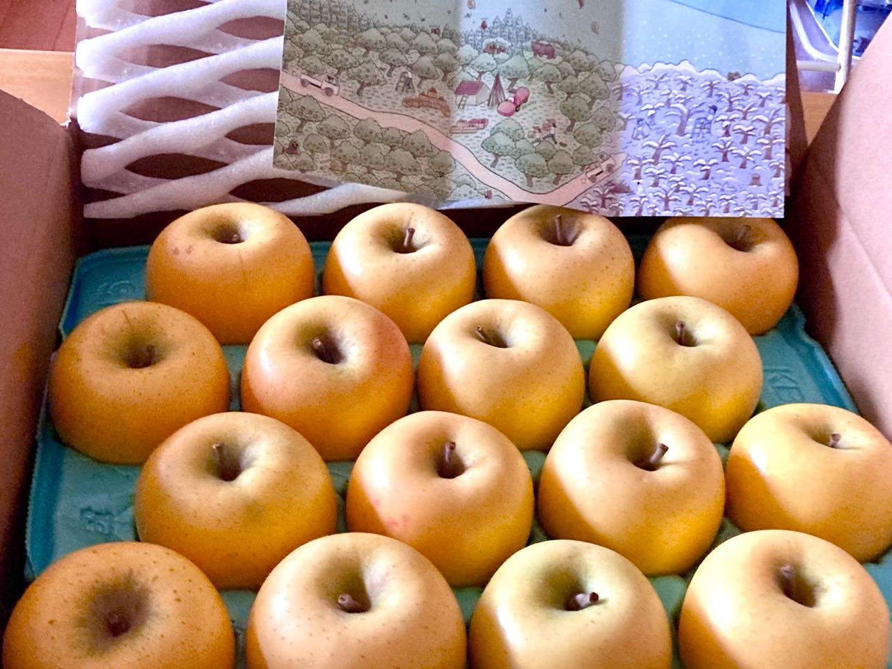写真にある→「黄色いりんご」は、青森県.「津軽山→岩木山」の.ふもとの→りんごです、、ご覧になって下さい、
