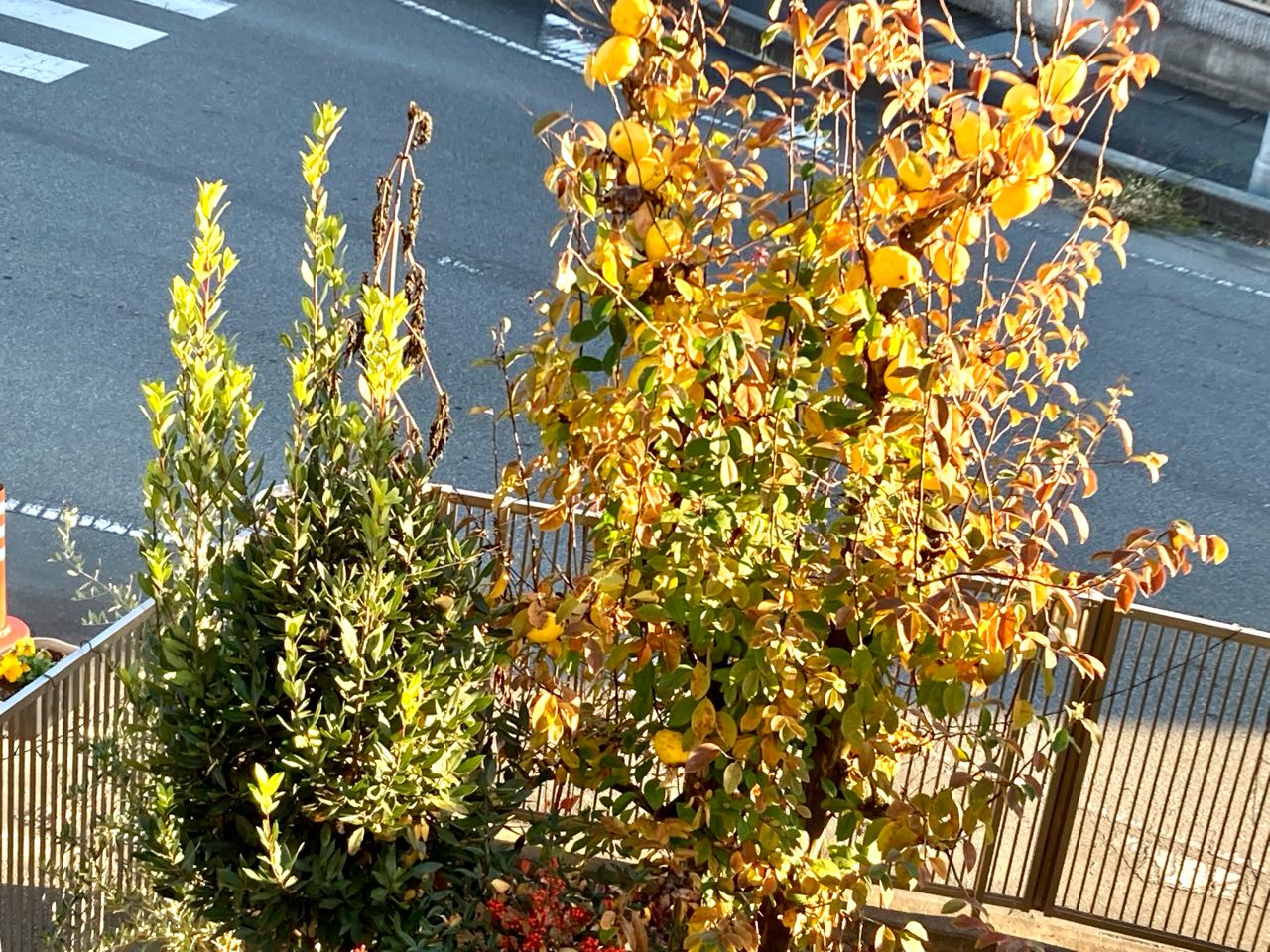 隣にある.→1)カリン実や、2)南天の実は、、霜に強いから、実が、きれいに、実っています、状況を→ご覧になってください、