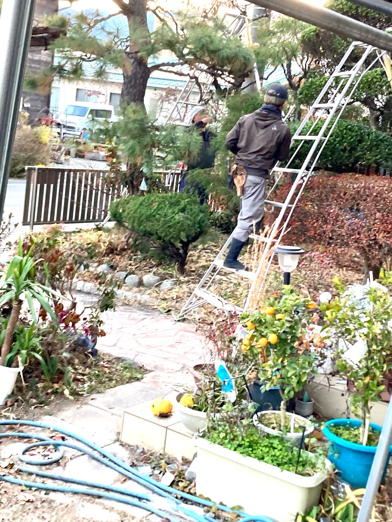 7日.午後から→明桃園の、庭師が4人→入りました、あっという間に、下草の整理から、松の手入れ、カリンの木や、つげ、ドウダンツツジ、キンモクセイ、