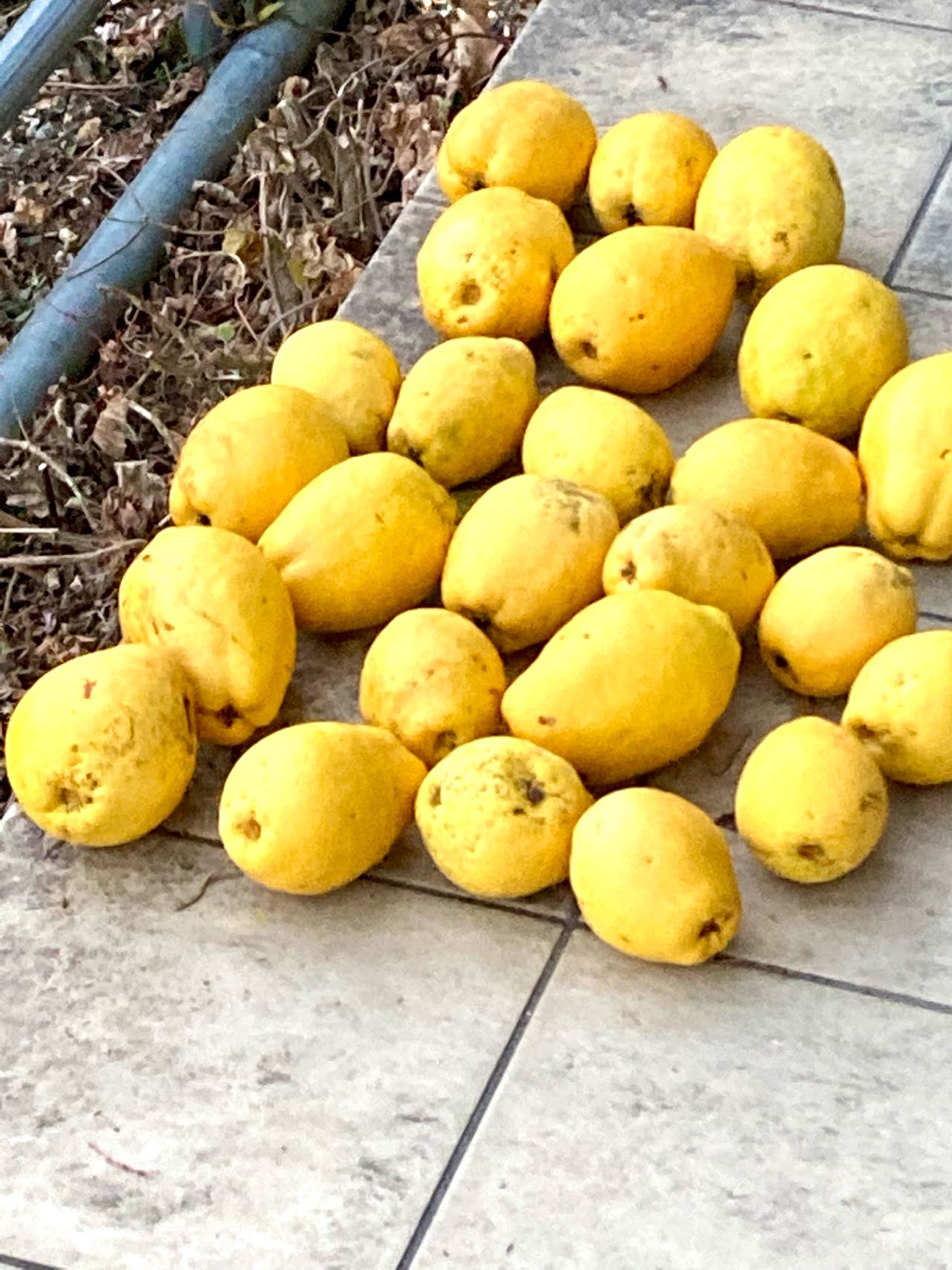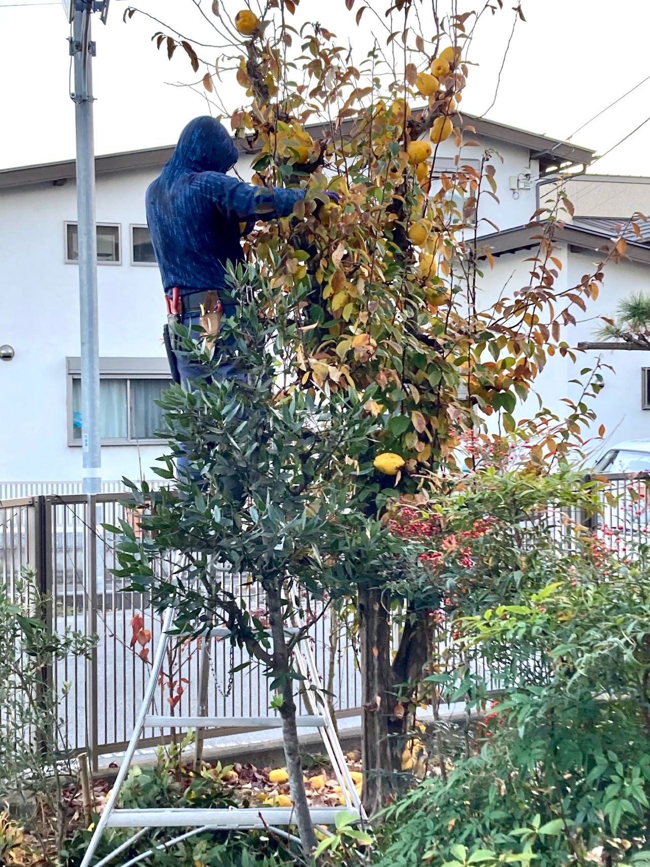花梅等、、つい.先日まで→きれいに咲いていた、「皇帝ダリア」の、後片付けも、してくれました。カリンの→実も全部、取ってくれました。