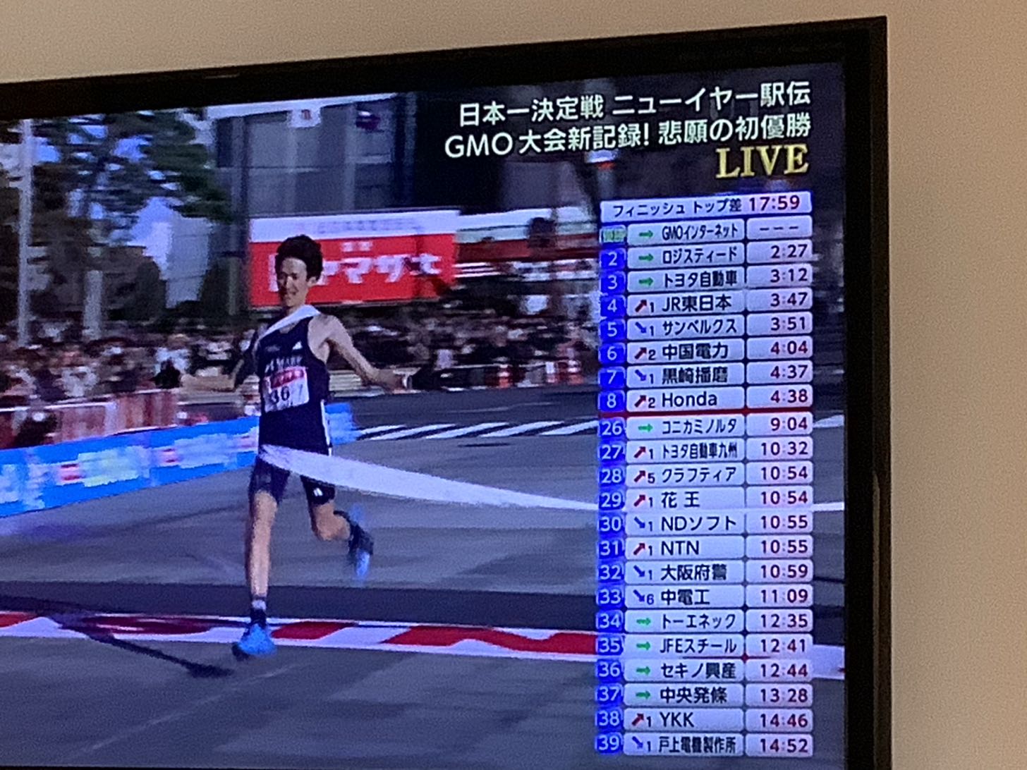 優勝したのは、GMOインターネットチームで、4時間44分、過去最高記録でした、すべてのランナーが素晴らしい。走りで、駆け抜けて、区間新記録が、続出でしたので、テレビを、釘付けで見ていました、
