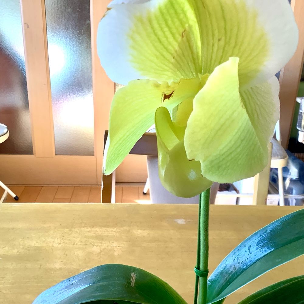 孫、、飯野小学校2年生に、1月2日→私の.お誕生日プレゼントに、♪洋蘭→バフィオペディラムをいただきました。とっても、きれいな可愛らしい→イエローの.蘭です。お年玉で→買ってくれたのかナ♪♪♪