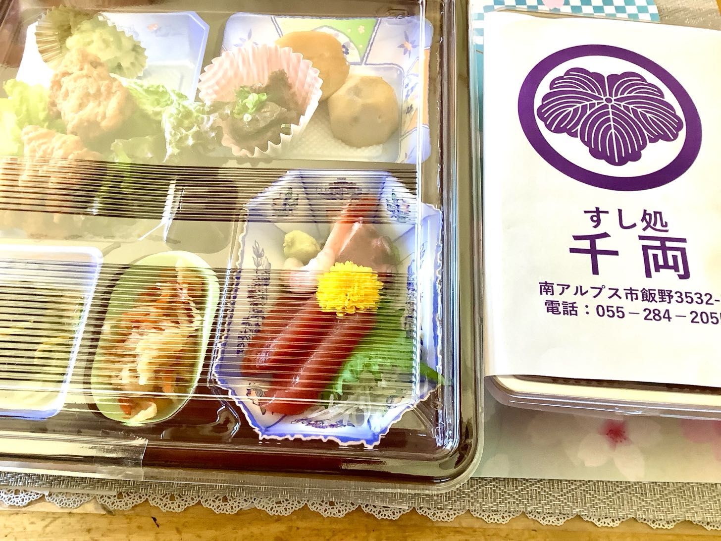 私は.他に→用事があり.都合で欠席しましたら→役員さんが.お昼に.→寿司処.千両さんの、新鮮な→美味しい.♪お寿司をと→♪お料理をお届けて.いただきました。小学生の孫→2人が、日曜日で、お家に.いたので、あっと.いう間に食べて.しまいました。ご覧になって.ください。